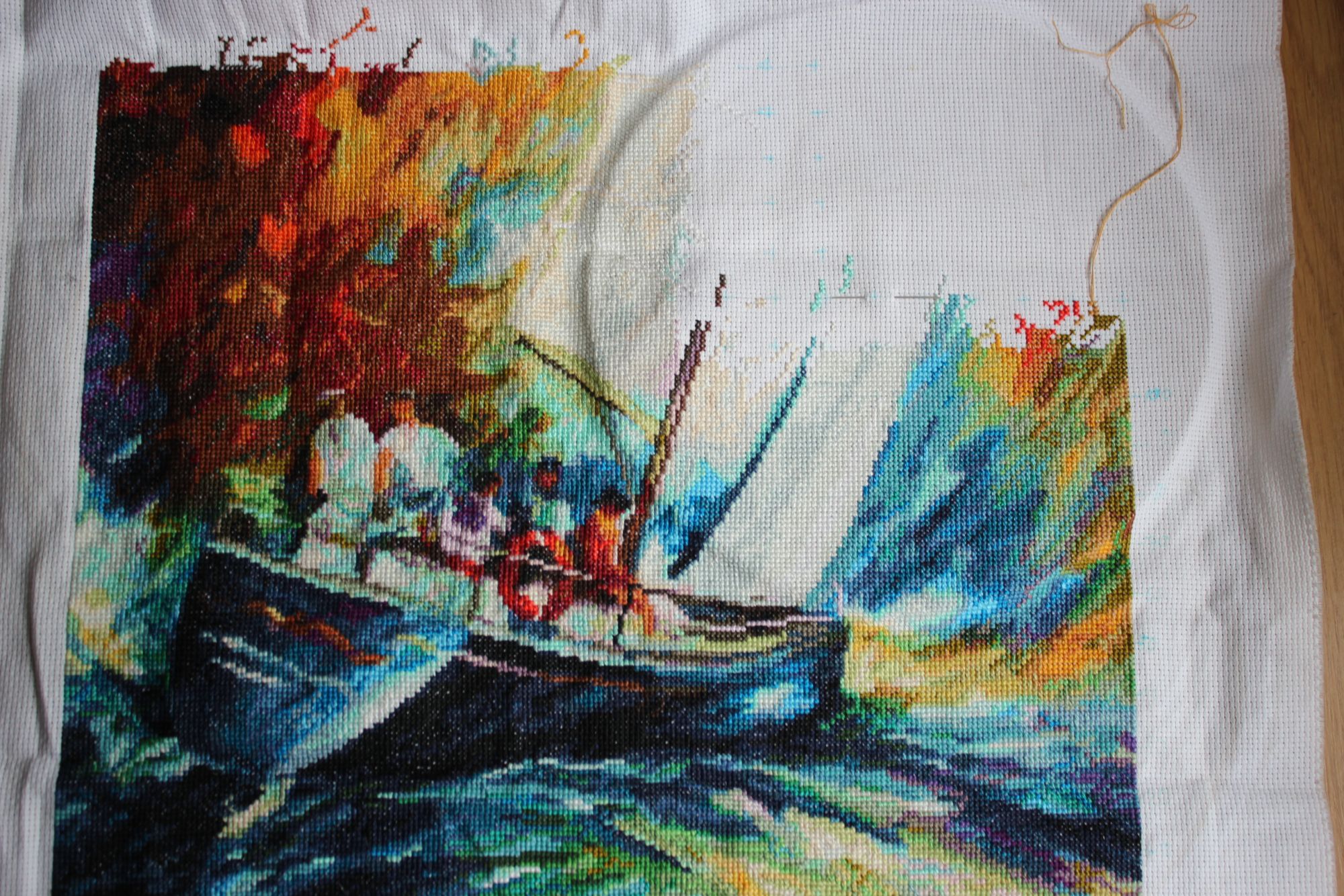 17 апреля 2017 Привет! Как-то незаметно опять пролетели две недели... "...я постоянно, всем телом ощущаю, как течет через меня время, проливается через край, утекает..." (Макс Фрай, Ключ из желтого металла). Ну а если без философии - то кое-что навышивалось, покажу. 1. Лошади. Мой долгостройный процесс, страшно даже подумать, что эта красота так и лежала бы сейчас в коробочке с начатой мордой первой лошади...Лист не закончен, но фотографировала разворот - похвастаюсь, потому как они ну очень красивы! 2. Для тех, кто волнуется за судьбу Парусника, пропустившего поездку в Питер) Немножко, но пошился...там крестиков около 1500 всего... Простите, пяльца не стала снимать, буду стараться шить потихоньку. Было/стало И кусочек поближе в солнечную погоду. Потрясающие цвета просто! 3. Могу предложить уже кофейку желающим - вышилась чашечка и кофейные зерна, которые добавляют объема картинке. Поднос шьется скучно...но он скоро кончится. Было/стало 4. Был у меня денек, когда требовался позитив - срочно-срочно, и не из того, что было под рукой...ну из разряда - чего хочу - не знаю, чего знаю - не хочу...Вытащился панновский наборчик - Календарь радости, с веселыми мышами (правда в нашем семействе это все-таки крыски, когда-то держали этих животных и очень их любили). Там был вышит только апрельский крысеныш, и пошла я не в май, как требовала логика, а сразу в июль, начала вышивать дамочку, блаженствующую с удочкой под пальмой... Ну, пока только пальма и кусочек песка, но уже очень туда хочется... 5. Ну и...у меня новая гаечка! Не, ну сколько можно уже жить, не попробовав, что такое гобелен??? Итак, Лука`с, Осенний пейзаж (или Осенняя мельница). Непривычно было только первую ниточку...потом даже не задумываешься, как положить стежок... И очень нравится, как получается! (Правда, пришлось уже распороть кусочек - этот процесс ну совсем не понравился!) Смешно смотреть, как меленько все получается по сравнению с соответствующим участком схемы)) 6. Новые гаечки - это конечно здорово...но вообще-то, четвертый месяц года идет, надо бы и заканчивать что-то...составила вот такой коллажик наборов, у которых есть шанс быть законченными в этом году. (Вообще-то надо штук 10 хотя бы, чтобы не отстать от прошлого года, но может позже к этому списку добавится что-то еще). Так что очень прошу дружественных пинков в сторону зеленения гаек! Всем теплой весны, нежной зелени и солнечного настроения! Nat717, hobby_time, solnishko-ym и 24 других сказали спасибо Поделиться сообщением Ссылка на сообщение