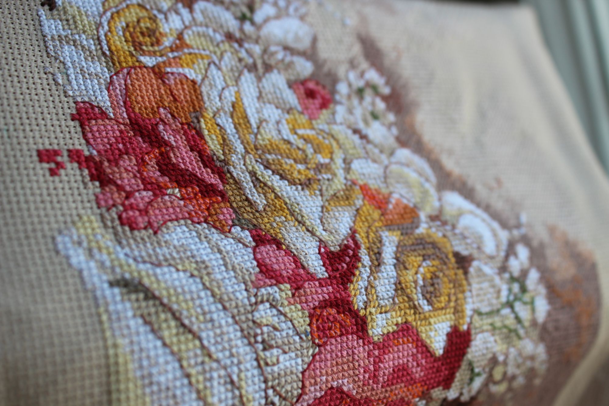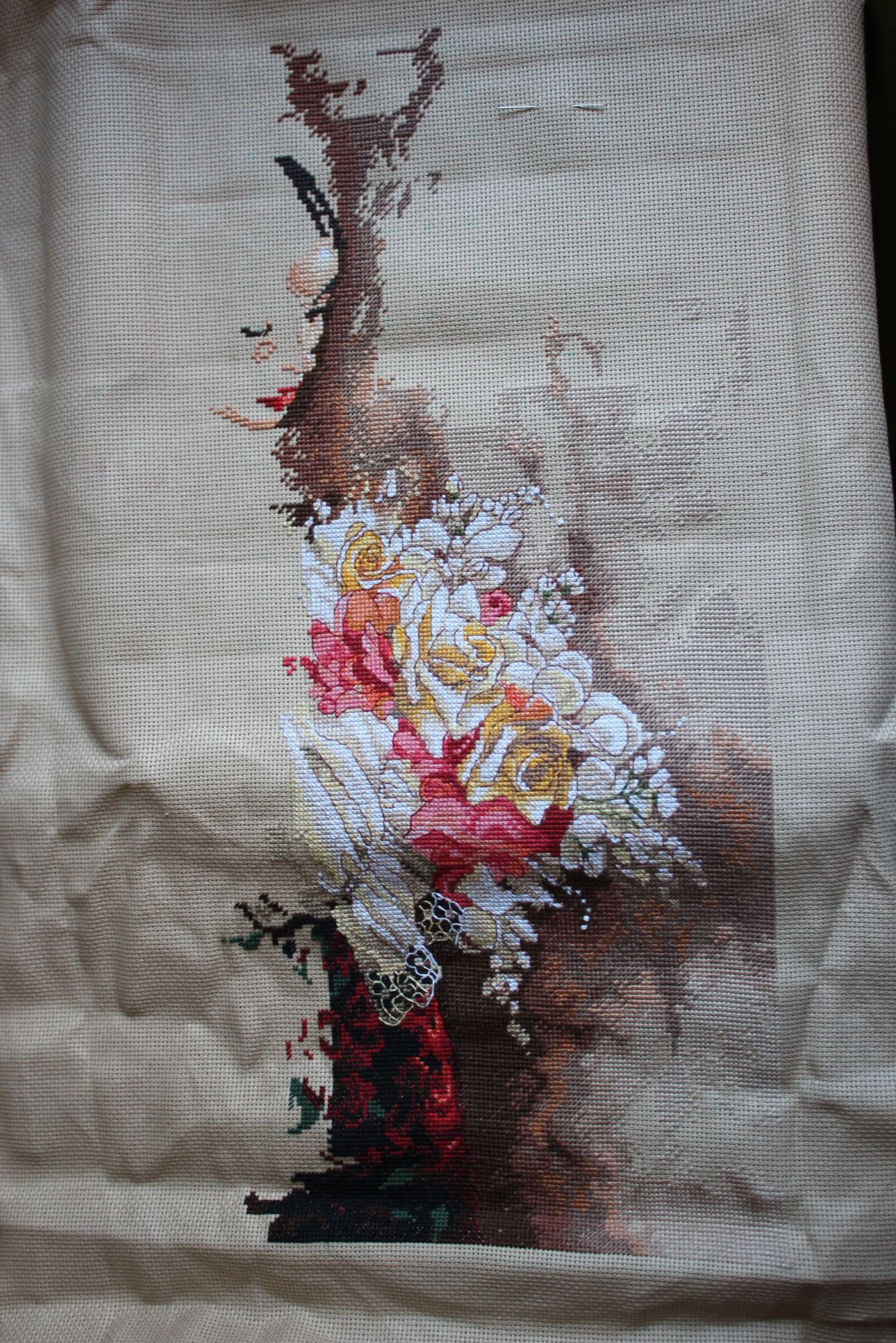 8 августа 2017 Привет! Не потеряли? Тут я. Просто почему-то очень сложно собраться и написать отчет. Эти три недели я практически однопроцессница! Так что отчет не тематический в этот раз. Планировалась тема девушек, потому что надо же шить подарочную Девушку с букетом, и в результате практически она одна и шилась - а я боялась, что если переключусь на другое - спугну девушковышиванца. Итак, Девушка с букетом от Дим. Можно не буду искать "было"? Был немного начат второй лист - верхняя часть букета. Потом стало вот так: и вот так. Добралась фоном до верхнего края, залезла немного на соседний лист, вышивая лицо. Кстати, это кажется первый мой довольно крупный портрет - самыми первыми были музыканты из Анкоровского Джаза, но там лица были довольно условно прорисованы. О схеме. Схема крупная, хорошо читаемая, на двух больших листах с двух сторон. Ну вот что бы на другую сторону не поместить диагональный лист, с которым не надо стыковаться??? Не...как раз вторая половина лица - на обороте, соответственно сделала копию и прикладываю ее...ну вот вроде во всем классный производитель - что же такую мелочь-то не продумать?) Очень нравится шить, но все-таки три недели - предел, похоже, для одного процесса. Не то чтобы надоел, но вот скорость и энтузиазм снижаются - а нам оно надо? Поэтому переключилась все-таки, и следующий отчет точно тематическим будет) Да, еще кусочек, при хорошем свете - цвета близки к натуральным. Я сказала, что девушка была практически единственных процессом, но только "почти"... Устроила я тут себе как-то выходной среди недели - ушла с работы в 11 часов и умотала в Леонардо. Давненько я не могла себе позволить провести там три часа! Зато я успела просмотреть ВСЕ наборы, которые там были! Вот прям все-все! Там очень много Панны, и в ней трудно копаться, поэтому обычно, если ничего не нужно - туда не лезу. А тут - в свое удовольствие рассмотрела все спокойно, никуда не торопясь, поняла, что очень многие купила бы, если бы не всякие "не"...Даже вытащила пару наборчиков - из распродажных, которые были по 199р, и которые мне нравились когда-то, и долго таскала их с собой...но потом поняла, что покупать их, чтобы положить (запихнуть!) в комод - не хочу. Полезла смотреть Алису, Чудесную иглу, Сделай своими руками...ну и Риолис, который в Леонардо появился в достаточно полном ассортименте. В результате - две пополняшки, классные и совершенно необременительные для бюджета. И раз речь о пополняшках - из Москвы от подруги в опте приехал наборчик от Овна - почему-то именно на этот, зелененький маяк, я запала... Ну и начала вышивать беленького котеночка)) Большинство шьет черного - а мне этот очень понравился! И брата с сестренкой тоже потом куплю, наверное (Беленький у меня девочка, трехцветное чудо - тоже, а черный хулиган - братец). Новый процесс (42й в начатых....) Риолис 1547. Шерсть ложится на эту новую канву очень плотненько, забор шьется в 1 нить, а котенок в 2, хвостик получился совершенно очаровательным! Забор шить скучно... О вышивальном вроде все... Наконец-то пришло лето, и мы три раза ночевали в саду - это намного приятнее, чем мотаться туда-сюда одним днем...Самая прелесть - в вечере, когда уже не жарко, и дела переделаны, и никуда спешить не надо, и просто сидишь и наслаждаешься тишиной... Ну и не без помощника же! Без него никуда) Ну а теперь немножко о главном для меня в последний месяц...