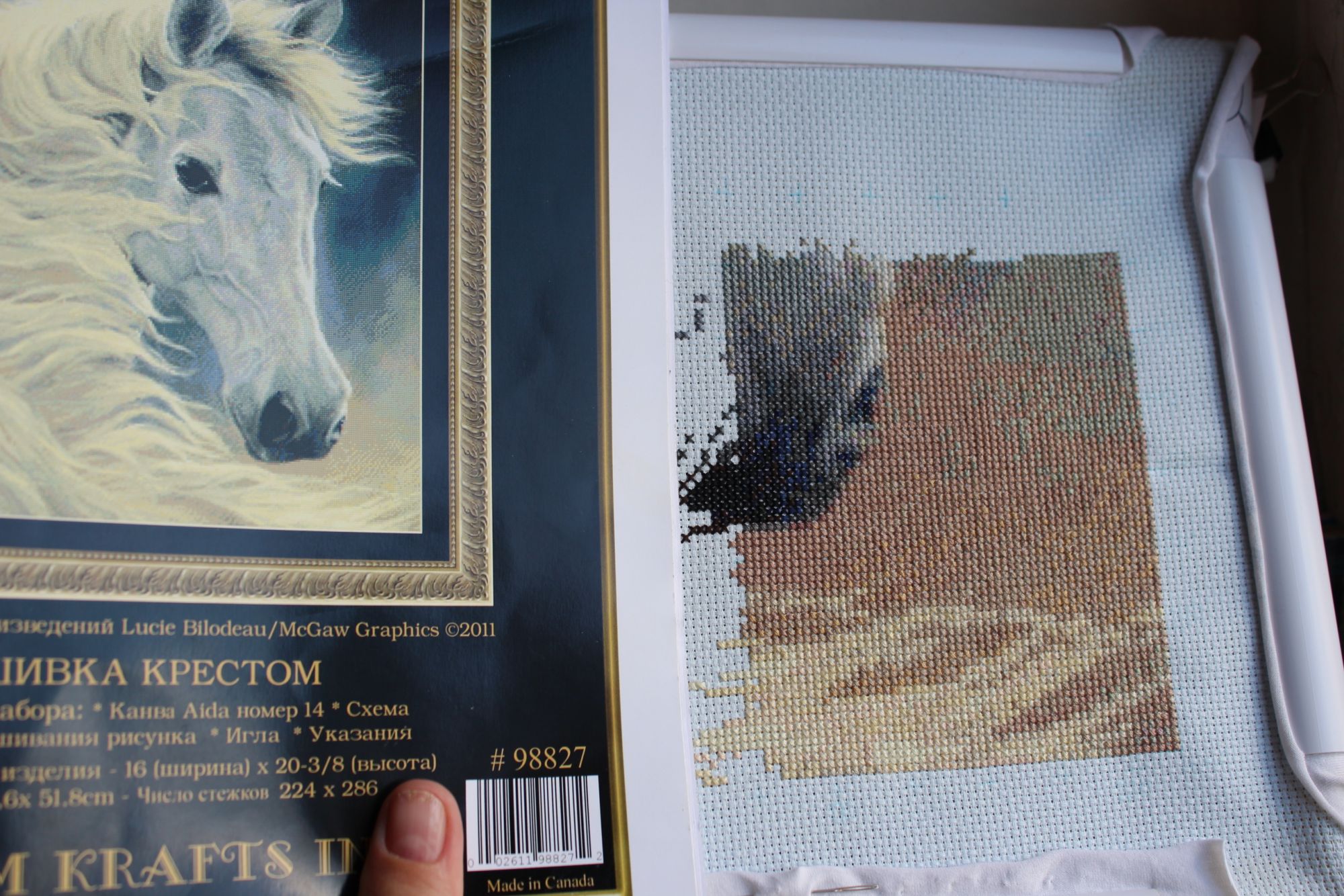 21 августа 2017 Всем привет! Я с отчетом. Отчет в этот раз был посвящен работе - надо мне как-то побольше усилий прилагать, а я все никак не раскачаюсь...поэтому вышивались у меня лошадки. 1. В долгостройном табуне от Риолиса наконец-то экватор!!! какие же они красивые! Жалко, что медленно шьются, но без игры я бы их отложила надолго... 2. Немножко повышивался силуэт дяденьки с конем - от Heritage. Стыдно, что немножко, потому как очень легко шьется - могла бы и дошить уже. Но времени мало на него выделила, и если честно - скучновато шить одним цветом)) Хотя нравится очень, что получается. Было/стало 3. Основное время эти две недели посвящала лошади от КК. С огромным удовольствием шила и шахматку (которая совершенно не бросается в глаза на вышитом участке), и одиночки - которые вовсе не одиночки, а небольшие компании. А оттенки фона - практически те же цвета, что в силуэте). Готов один листик из 16. Цвета совершенно не те, что на обложке, гораздо темнее и теплее, но отшивы посмотрела - все нравится. И лошадиный нос получается совершенно настоящим. Как всегда - жалко откладывать, но уже хочется переключиться на другое... Да, балдею от кастомовской канвы! Она такая...вроде бы плотная - и в то же время мягкая, толстенькая, очень приятная на ощупь... Хочется еще кастомов... Было/стало, и фото для сравнения с обложкой. Мишель потихоньку осваивается, хотя время проводить предпочитает "в норке" - у меня под столом. Помогает вышивать) Нашла фотографии ее маленькой, когда ее только подобрали на улице, в декабре прошлого года. На этом прощаюсь, а тему следующего отчета могу озвучить сразу - в честь появления нового жильца вышиваться будут Собаки)) Selinta, Юнона1960, Kip’sMiracle и 24 других сказали спасибо Поделиться сообщением Ссылка на сообщение