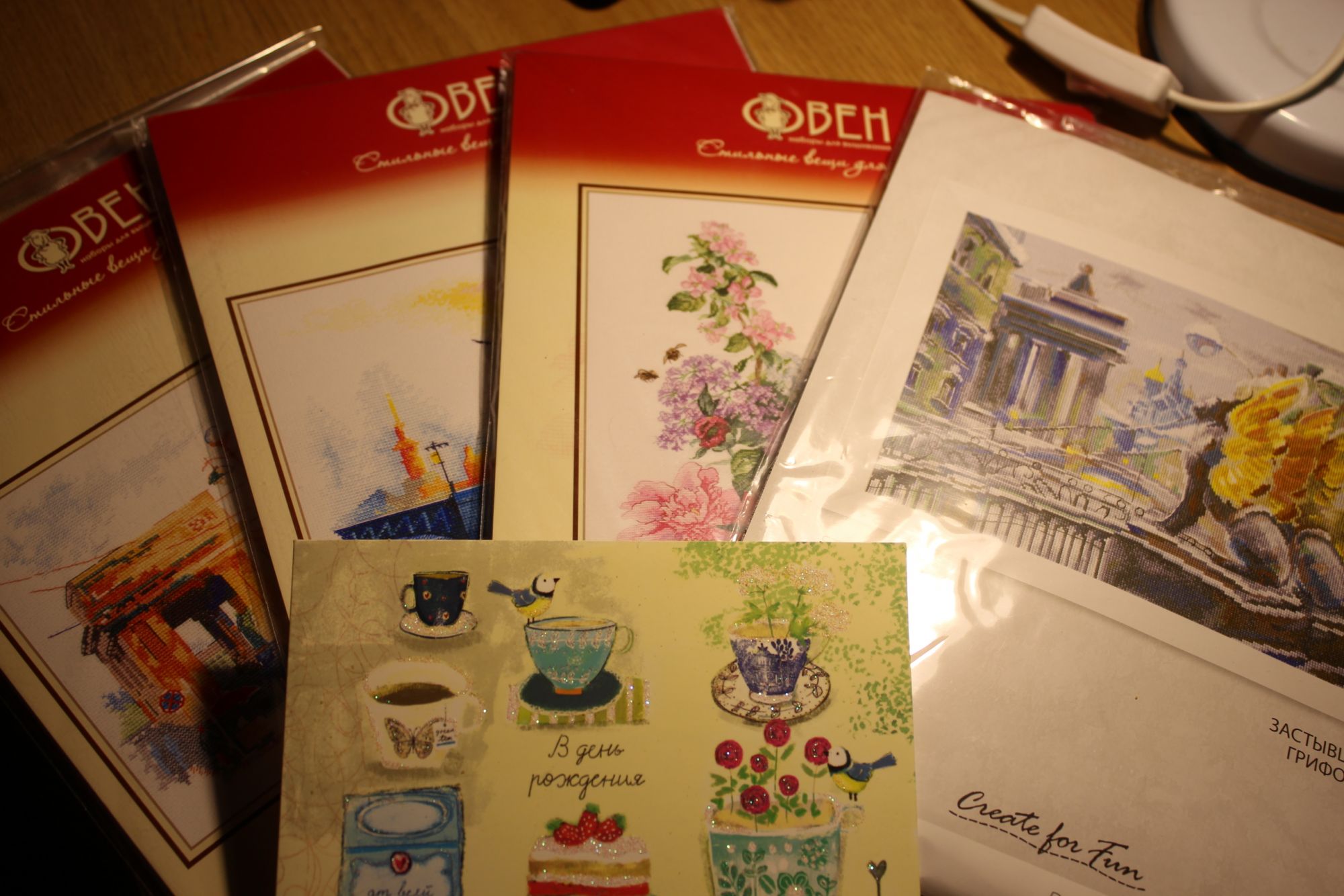 10 ноября 2017 Девочки, поздравляю всех с нашим любимым вышивальным праздником! Пусть у нас все крестики всегда шьются легко и в удовольствие, и наличие времени совпадает с желанием шить! Первая часть отчета - подарочная! До меня добрались две посылочки и принесли с собой много-много радости! Шли они долго, надеюсь, ничьи головы не успели поседеть, пока глаза с тоской вглядывались в надпись: Покинуло сортировочный центр в Воронеже...и дальше - всю неделю пустота...Ну, кончилось все прекрасно, просто у них меняли программу и никто ничего не отмечал, видимо. В общем, я стала обладателем кучи счастья! Первая посылка пришла из Нижнего Новгорода от группы товарищей по иголке)). Счастье в виде знаменитых уже на всю страну и ближнее зарубежье Каурок досталось не только мне, как вы понимаете, главное, успела попробовать, вкуснотища! Кирюхе тоже перепало - офигенная (для него) машинка и офигенные (с моей точки зрения) книжки! Книжку с кротом у него теперь не отобрать, ну и мультики с кротом только теперь смотрим...(а их 63 серии, как оказалось...у нас еще много впереди)) До второй книжки пока не добрались, сама я ее не читала, но индейский вождь плохих книг не посоветует))) а какие там картинки, можно бесконечно рассматривать... Ну и непосредственно мое личное счастье...куча хочушных наборчиков! Жаба обиженно улеглась на полку зубами к стенке, хомяк танцует джигу)) (и пытается запихнуть счастье в норку, что не так-то легко, хочу заметить). Ну что тут скажешь. Простым "спасибо" тут не отделаешься, придется все это вышить же! Поэтому говорю - мне подарили несколько дополнительных лет жизни...так и до бессмертия недалеко, пожалуй)) Вторая посылка от Леночки AlexaA. Классный мешочек с вкусными конфетами (там Красная шапочка, я ее обожаю!) А мешочек-то не простой, на нем можно вышивать, я уже даже знаю, что там будет! Канва шикарного цвета растаявшего крем-брюле, мраморная, очень хочется что-то для нее придумать, готового решения пока нет, но буду искать, я на такой не вышивала никогда еще! И замечательная зимняя девчушка от РТО, она такая милая! Леночка, спасибо, дорогая, девочка обязательно будет вышиваться, постараюсь не откладывать ее далеко. Девочка из сказов Бажова... Я даже рада, что посылки опоздали ко дню рождения. Я после него заболела, мы с Кирюхой какой-то вирус гадкий словили, давно так тяжело не было...а тут как-то отживела даже, энтузиазм появился - вон, даже на отчет сподобилась) Так что спасибо вам все еще раз - и за подарки, и за поздравления, я так рада, что вы есть в моей жизни! Вышивальный отчет следует... Selinta, ЛАДОМИРА, Ginger_mama и 25 других сказали спасибо Поделиться сообщением Ссылка на сообщение