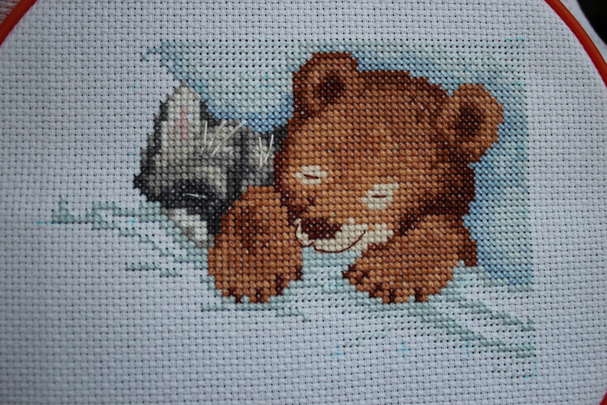 10 ноября 2017 Ну а теперь о вышивальном... Не могла же я в наш главный день не принести готовую работу! Это ведь так редко у меня случается! (Ага, по праздникам ) 1. Зеленим гаечку. Закруглился мой круг, Утренняя доставка от Heritage! И я очень горда собой за то, что не отложила его в очередной раз. Но, скажем прямо, это было невозможно - не отпускал, и все тут...вот она, геометрическая магия... Сначала он стал круглым, но с проплешинами, Ну а потом еще неделька - и готовый круг! Макрики мой фотик не делает, просто чуть покрупнее. Вышивала по набору - это мой единственный набор был Heritage, начинала в 2013 году. Поверьте, что откладывался процесс не из-за того, что почему-то не хотелось его шить - просто периодически наступали моменты, когда сильно-сильно хотелось шить что-то другое...ну это нормально для знатной многостаночницы))) Шьется как песня, бэка- минимум, рельеф создается узкокрестиками - в доме и телеге, в основном, ну и стебли борщевика... Про бэк - вчера закончила шить крестики, оставался бэк на борщевике справа. переставила пяльцы, дошила, радостно выдохнула, замочила в тазике, не спеша перемотала остатки ниток на бобинки, убрала в пакетик схему...пошла вешать сушиться - и увидела, что темный-то бэк я сделала, а вот светлый...обидно было - не то слово! Сегодня доделала за 5 минут, было бы о чем горевать... 2. Зверюшки под одеялом от ЧМ. Не буду искать "было", ладно? Вышился мишка и котенок (хотя может и енот, но у Кирюхи это котенок). Он вообще мне сказал, что из всех звериков я могу вышить только котенка и не напрягаться насчет остальных))) На что я ответила, что придется ему терпеть всех! Очень легко и хорошо шьются. 3. И снова новое))) Группа товарищей авторитетно заявила мне, что нельзя же ничего не начать из такого количества подаренных наборов, и что при моих цифрах в гаечке уже ничто не принципиально... В результате - встречайте. Овен 1003, Дворцовый мост. Тут сразу прошу не кидаться в меня тапками...Да, согласна целиком и полностью, что эта серия лучше будет смотреться на равномерке...но подходящего куска не оказалось, та, что есть - 27 линда, каунт больше, чем в наборе (16), да и узковат кусочек, да и берегу я его под панельку какую-нибудь клейтоновскую, вдруг приспичит...а ехать куда-то покупать специально на замену - лениво. В общем, шью на том, что в наборе. Грубовата, конечно, канва для такой чудесной акварельной работы, даже гаммовская была бы лучше, она более гладкая - а в наборе сильно рельефная, и дырки как-то очень выделяются. Но когда все будет вышито, и с белой подложкой при оформлении - будет все хорошо, я точно знаю) Схема отлично читается, количество значков зашкаливает))) В наборе 24 цвета нитей - и 56!!! различных значков - многие нитки используются и в 2, и в 1, и в кресте и в полукресте. В общем - не скучно! Начала с середины, пока чуть фона и маленькая одинокая чайка (да, из этого обрубка получится крупная гордая птица) - чем-то напомнило: "На большом, совершенно чистом листе в нижнем углу был нарисован крохотный красный петушок. — Картина называется: «Очень одинокий петух», — объяснил Карлсон. ..... — Этот «Очень одинокий петух» создан лучшим в мире рисовальщиком петухов, — продолжал Карлсон, и голос его дрогнул. — Ах, до чего эта картина прекрасна и печальна!.." Как всегда, разрываюсь между процессами, которые хочется шить все и сразу... Дворцовый мост в любом случае буду шить нескольк