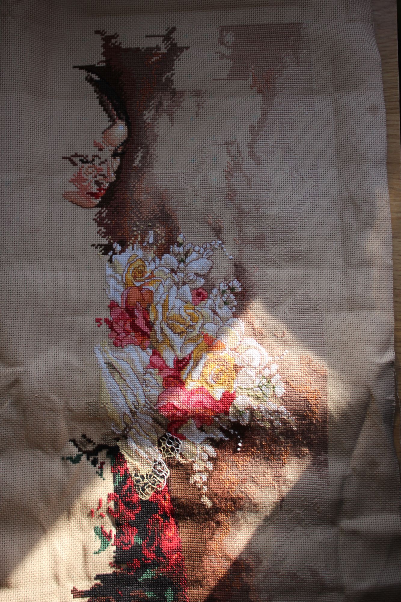 6 июля 2018 Привет! Совсем я затянула с отчетом, все казалось - мало набралось... 1. Зеленю гаечку) МП студия, Кактус и суккуленты. Очень понравилось вышивать! Только ужасно мешается вся остальная рубашка))) Кактусы - это Алисе, Оле хочу вышить перышки. 2. Кузябрик от Риолис - думала тоже закончу - но нет, остался еще один цвет. Посмотрите, как меняется выражение мордахи с добавлением каждого цвета! Прикольные глаза, совершенно косые и совершенно разные по выражению))) Левый глаз так и остался строгим и подозрительным, прям Грозный Глаз Грюм))) 3. Наконец-то добралась до Девушки с букетом от Дим!!! Как-то нелегко у меня с ней отношения складывались, хотя очень нравится. Я ее на снапах небольших вышивала - вроде удобно, но все равно как-то каждый раз приходится совершать какие-то телодвижения, чтобы удобно было...а тут наконец переодела ее в пяльца - и совсем другое дело!!! Намного легче и удобнее...а со снапами любит играть Кирюшка)) Было/стало Не так уж и много, дошила фон справа, перешла на левую половину, потом фон мне надоел, ушла шить лицо. Девушка, надо сказать, фотографироваться совсем не любит. Не могу поймать цвета, да даже выражение лица на фото получается более резким, чем живьем... Лицо шилось себе спокойно и приятно нежными телесно-абрикосовыми ниточками и их блендами, как вдруг...оранжевый тыквенный!! Напряглась, перепроверила, пошла смотреть обложку и отшивы...Решила, что раз столько народу ее шили и не переживали из-за тыквенных пятен на лице - значит так и надо... Была жуть жуткая...но когда появился бленд из этой тыквы и коричневого цвета, все стало на свои места. Вблизи - немного резко, в отдалении - рыжеватые тени и отблески... 4. И еще из вышивального - давно не показывала лошадок риолисовских, там вышилась половинка листика. Осталось 2,5 листа. Люблю их очень. Было/стало 5. Ну а невышивальное - это цветы, не могу удержаться и не фотографировать... Еще немного винтажности, только теперь цветет мелкая плетистая розочка, как будто создана специально для кукол... Ну и другие розы и цветы, и кусочек сада с внуком) На этом все, хорошего запоминающегося лета! Лена1973, Alina1989, TheSunniestDay и 34 других сказали спасибо Поделиться сообщением Ссылка на сообщение
