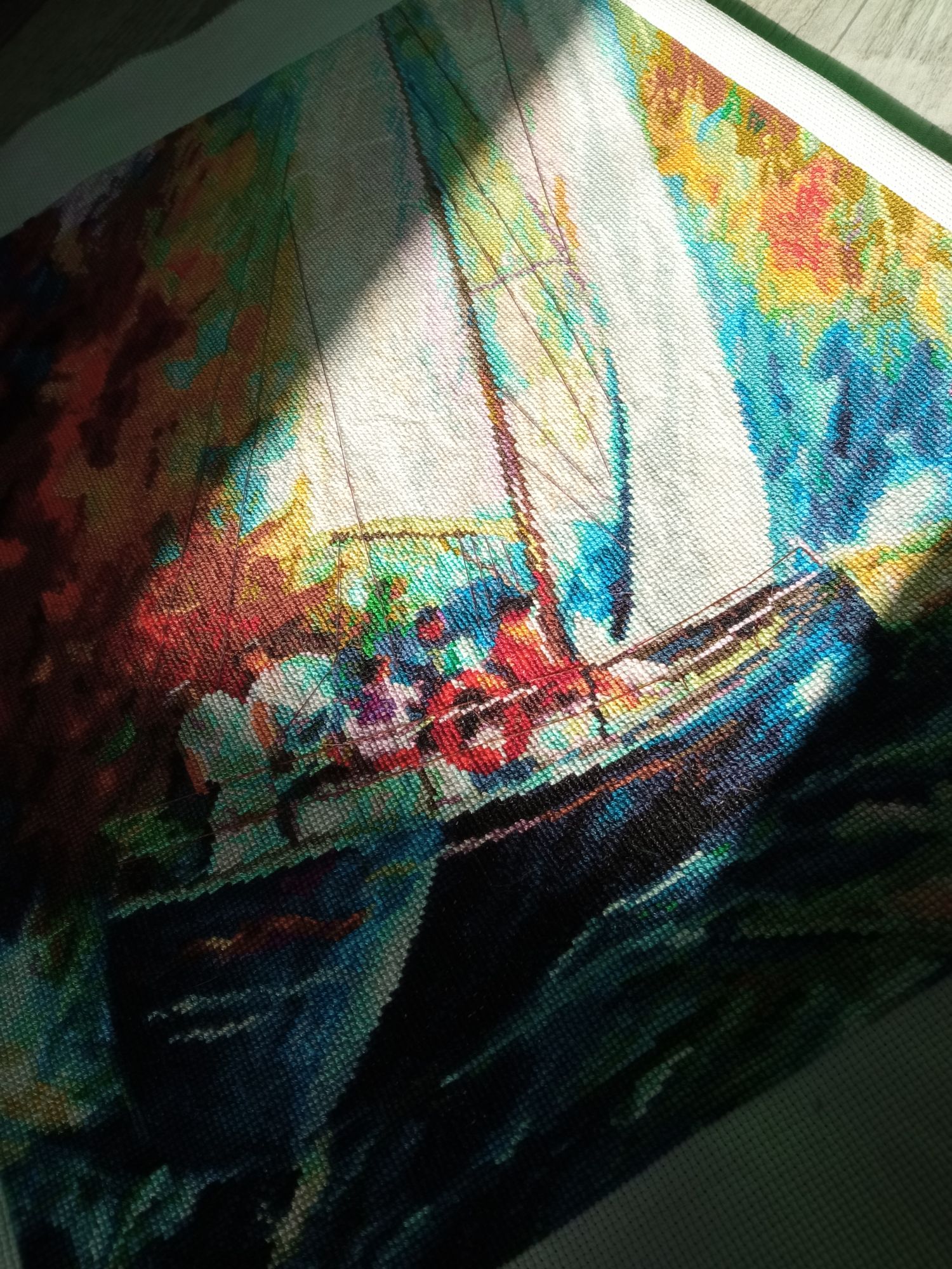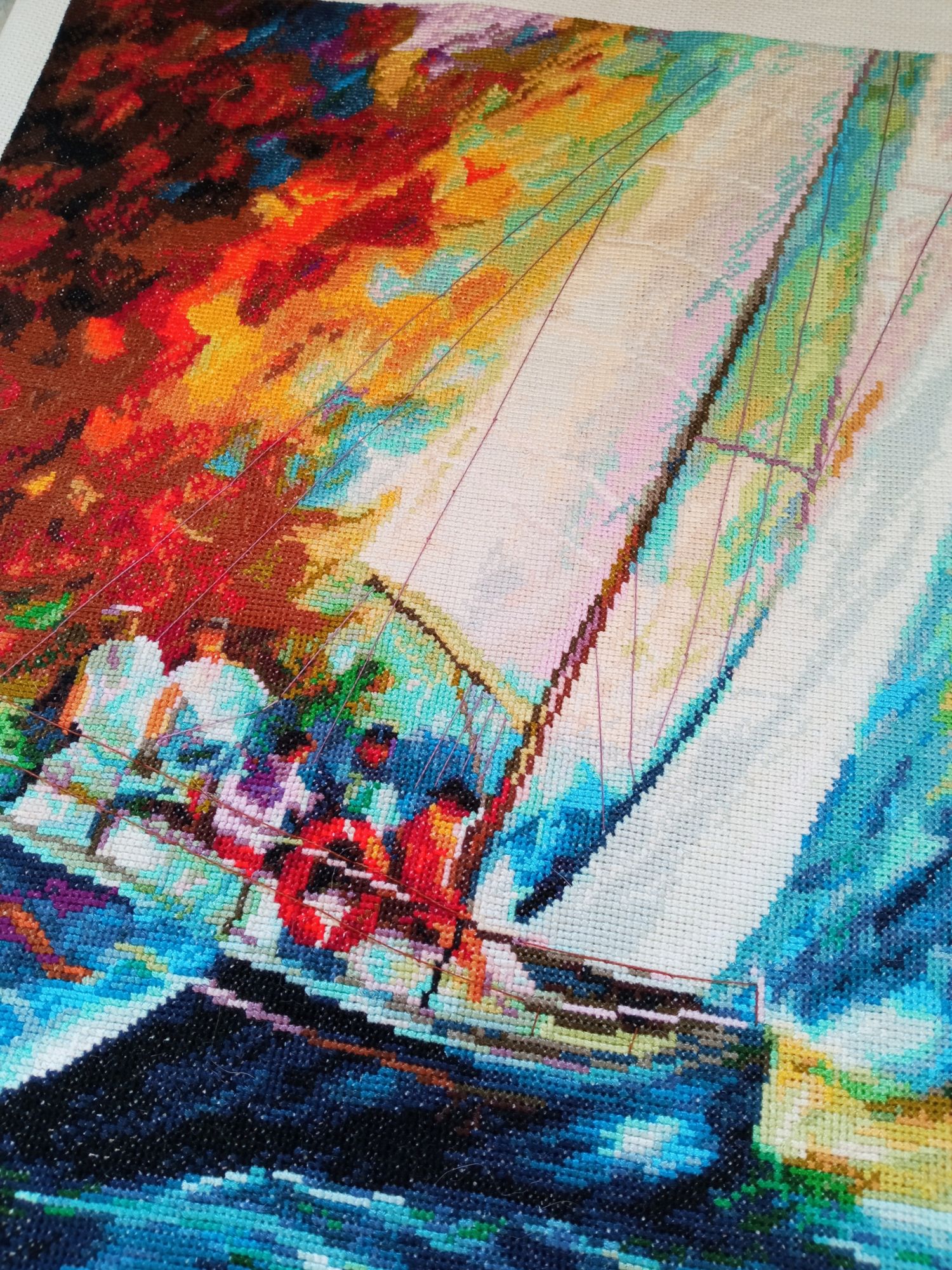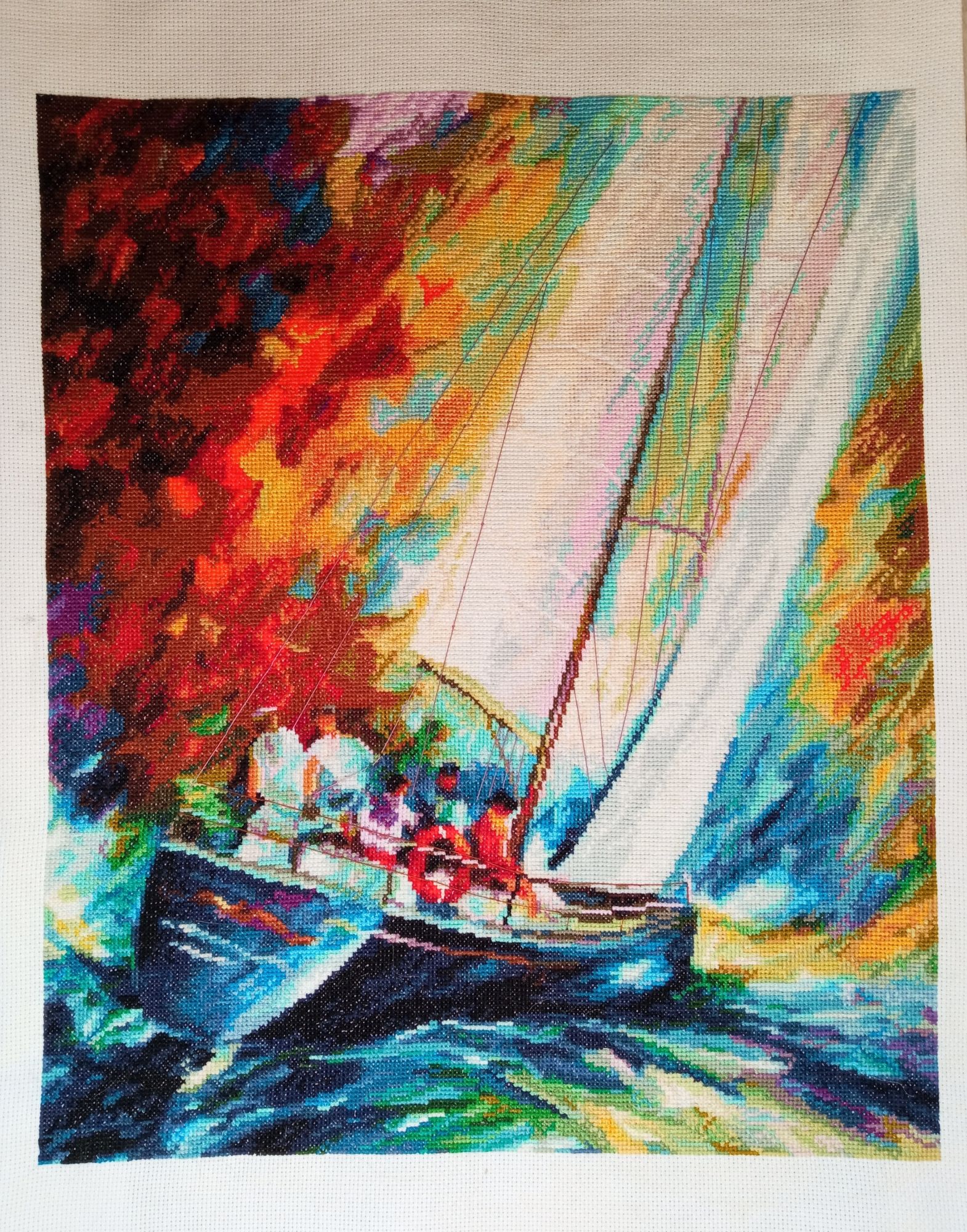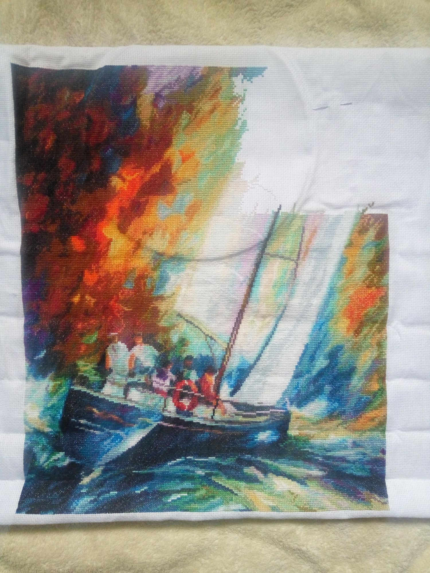 18 октября 2020 Привет. Я зеленить гаечку. Очень приятное занятие...особенно когда процессу семь лет исполнилось... Золотое руно, ММ-011 Парусник. Первое Золотое руно, купленное и начатое в 2013 году. Задумывалось как подарок хорошему человеку, который ассоциируется у меня с яркой жизнью, полной движения, скорости и ветра. Семь лет - это не потому что скучно или сложно. Потому что часто откладывала ради других, не менее интересных и любимых. Чудесный, яркий, не дающий унывать, отгоняющий хандру. Не могу назвать сложным, хотя да, много цветов, много группок по 2-3-5 крестиков. Парусник регулярно ездил со мной в Питер к Алисе, и очень продуктивно вышивался в поезде. В общем, с одной стороны облегчение, с другой - грусть, которой обычно не бывает у меня по окончании вышивки. Слишком он непохож на все остальные. Индивидуальность) Однозначно придется заводить еще одного Афремова)) Поняла, почему затрудняюсь с выбором следующего. В этом, помимо чудесных ярких красок, присутствует еще и драйв, в движении волны, в надутых рвущихся парусах, потому собственно его и выбрала. Остальные спокойные... В общем, финиш. И немножко осени. Ушла дошивать лошадей. Лена1973, Путешественница, solnishko-ym и 24 других сказали спасибо Поделиться сообщением Ссылка на сообщение
