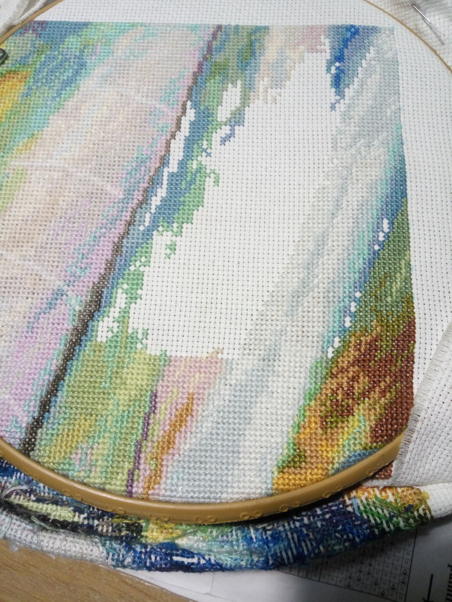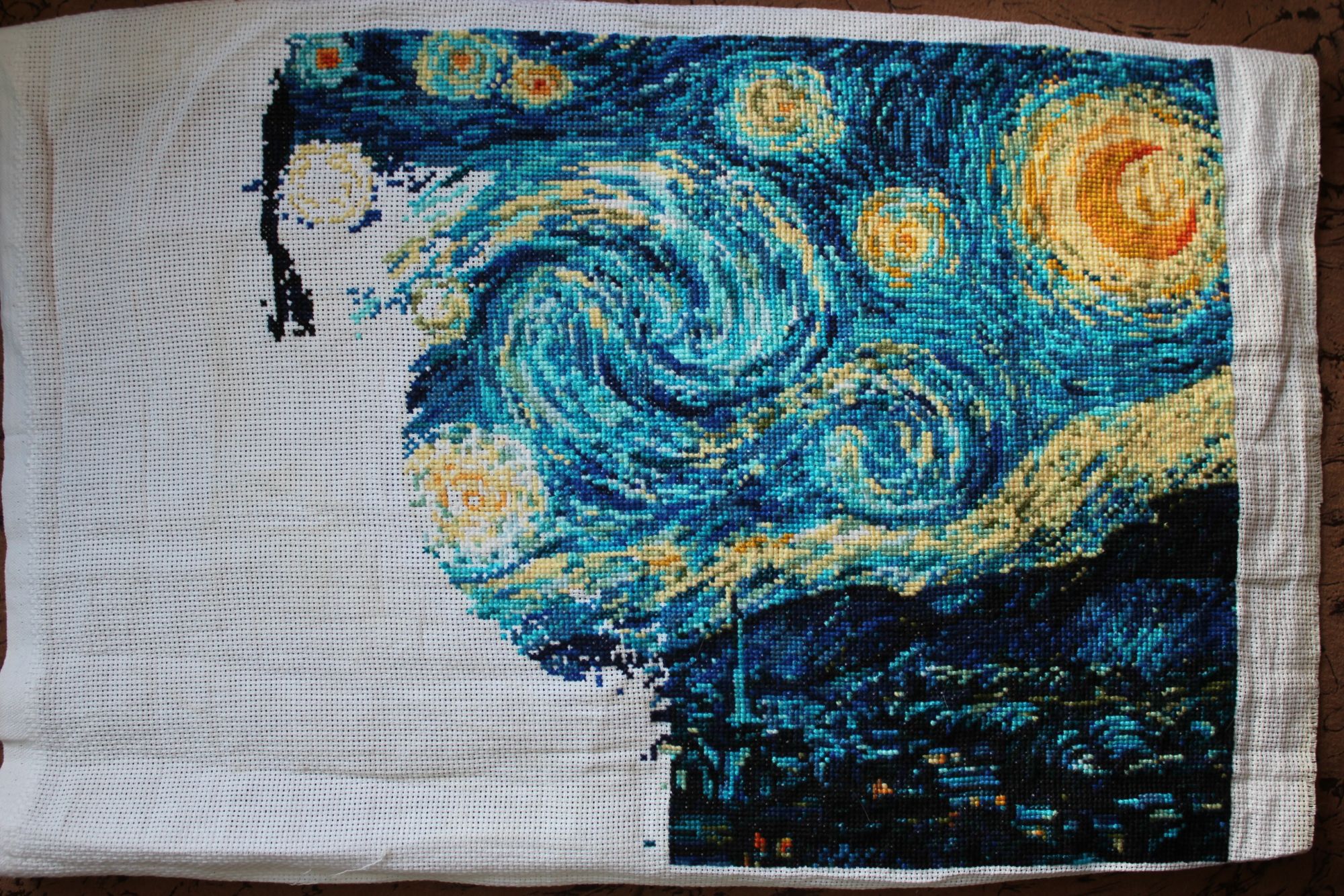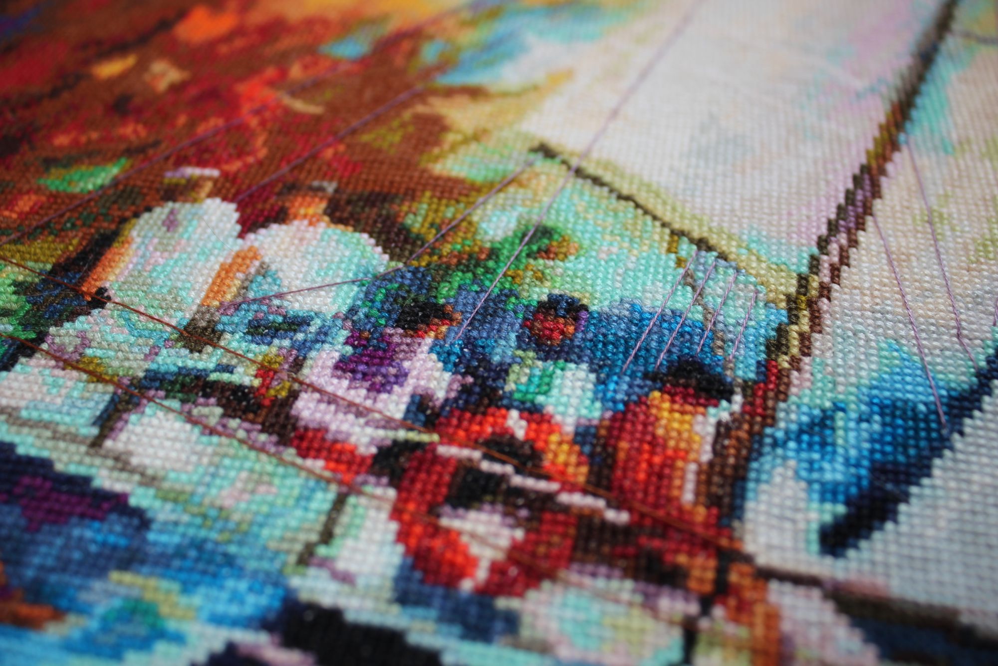 15 октября 2020 Всем привет! Думала, уже и не соберусь с отчетом, оно же как - чем дольше откладываешь, тем труднее сделать... Но накопилось уже столько всего, что откладывать некуда уже))) да и обстоятельства сейчас способствуют наведению порядка в вышивальных делах. Картинок будет много... Сначала продвижения. 1. Heritage 951. Было стало и - финиш! Совершенно фантастический по цветам круг. Совсем нет бэка, никаких одиночек...дошивался практически на одном дыхании. 2. Риолис 1088 Звездная ночь. Не очень большие продвижения, доползла до кипариса. Было стало 3. Риолис 989 Зима. Второй угол! (Люблю когда уголки появляются) Было стало Очень интересно шьется небо. 4. Риолис 1064 Табун лошадей. Осталось немножко) Было стало На самом деле сейчас уже нижний край вышит, осталось на недельку примерно. Не верится, что такой долгий процесс подходит к концу... 5. Риолис 830 Ночной город. Было стало Процесс небольшой, есть шансы не тянуть его на много лет)) 6. Золотое руно Девушка в яблоневом саду. Второй угол! Было стало 7. Золотое руно Парусник. Тут...тут практически финиш, тоже верится с трудом...и теперь нужен срочно еще какой-нибудь Афремов, буду скучать по этому калейдоскопу... Было стало четвертый угол Сейчас вышито все, но показывать пока не буду, осталась выкладная нить... 8. Heritage 268 Было стало 9. Derwentwater Березы. Второй угол! Было стало А теперь новенькое)) без него никак... 1. Риолис 1093 Подушка с психоделическим псом))) лошадиная доза антидепрессантов! В прямом смысле - огромная куча ярких ниточек! 2. Риолис 1117. Начало - и финиш! Один из редких быстрых процессов)) 3. Риолис 1720 Девочка с таксой. Влюбилась в эту картинку после отшива Оли Путешественницы) Как-то оказалась в Леонардо, без особых целей, но с намерением хоть чем-то себя порадовать. С удовольствием пересмотрела весь Риолис, с грустью поняла, что нравиться-то он мне нравится, но себе покупать уже ничего и не хочется....пока не наткнулась на девочку. В тот же день и начала. 4. Панна Ж-1327. Из того же похода в Леонардо. Нравилась картинка давно, но как-то все ни к чему было, или денег жалко... но очень надо было себя порадовать))) 5. Dimensions 13687 Очаровательный коттедж. Тут без комментариев, давно ждал своего часа. 6. РТО Кафе для двоих. Старая-старая мечта. Набор было уже не купить, схема родная, нитки DMC - чей-то подбор. Кстати это были первые мои ниточки DMC) Ничего особо не понятно по картинке, но цвета восхитительные. Вот вроде и все.....не, за это время еще процессов 10 продвинулись, но понемножку, покажу в следующий раз) Год нелегкий, как и у всех, но лето было неплохое, много ездила с Кирюшкой в сад, он пока с удовольствием составляет мне компанию, и даже помогает иногда. Съездила к Алисе в Питер, ей совсем трудно вырваться, на 4 денечка всего, но зато она была полностью в моем распоряжении, мы разговаривали, гуляли, готовили еду, пили вино и пели песни...и отсыпались. Уехать в Питер, чтобы выспаться - круто))) В общем, чудесно провела время с дочкой. В сентябре внезапно осталась без работы, вот потихоньку и разгребаю завалы...хотя понимаю, что работу искать надо, но чувствую, как оттягиваю процесс активного поиска. Совесть свою успокаиваю тем, что у меня много лет не было нормального ощутимого отпуска, надо же когда-нибудь) Но домохозяйкой себя не ощущаю, и не хочется, чтобы мозг решил, что ему можно отдыхать. Так что - как обычно с понедельника)))) - начну активно лазить