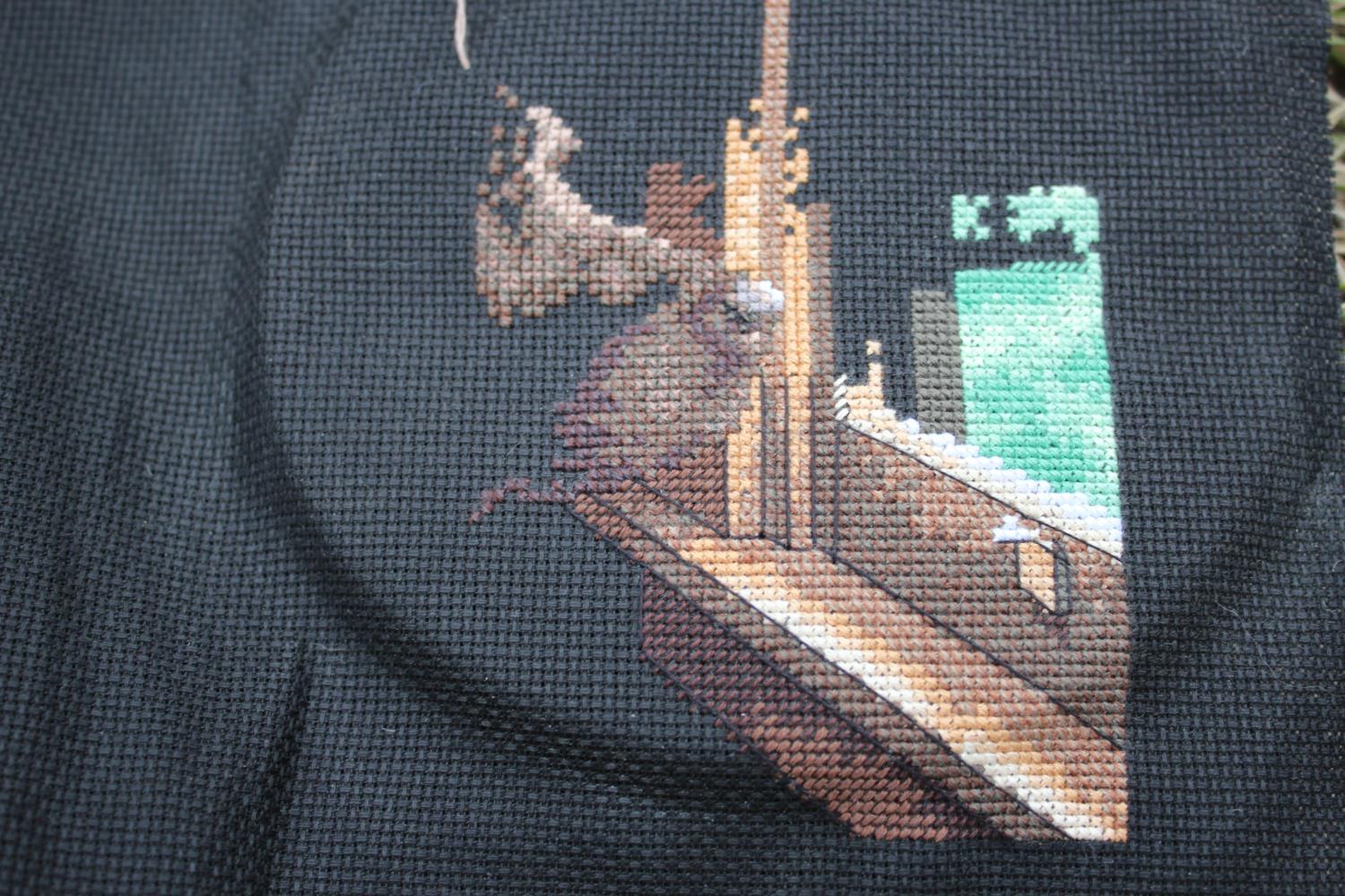 13 сентября 2015 Всем привет! Всего неделя прошла, а я собралась с отчетом) Может быть привыкну отчитываться каждую неделю? Все-таки дисциплинирует...вроде как... Ну ладно. Рериховские горы вышивались мало, продвижения не очень видны - но есть. Было/стало Собака уже задумчиво смотрит в окно...погулять пойти, что ли? Фотографироваться отказывается категорически. Собаку вышиваю по утрам перед работой, ну и в выходные немножко. Было/стало Забыла показать - недели три назад развлекалась. Захотелось мне попробовать, что такое водорастворимая канва. Вышила Кирюшке на пижамке малюсенький домик. Впечатления неоднозначные. Как получилось - очень нравится, так забавно смотрится, вышивать - сложно было. Самым трудным было протыкать плотный трикотаж. Двигалось все очень медленно, в результате на такую малюську потрачено два часа вышивального времени. С одной стороны - хочется повторить опыт, отложила кипу журналов с мелкими схемками, а с другой стороны - как всегда - времени жалко. Но зато хоть какая-то польза от моей вышивки))) Увидела в одной из темок вышивающую девчушку маленькую, выделила Кирюхе пяльцы, тканюшку, здоровенную иголку - и теперь у него появилась свой вышивка! Ему нравится, правда терпения хватает не надолго. Я начала понемногу ковырять табун лошадей от Риолиса (попросилась с ним в долгострои, но пока очередь жду - захотелось взять в руки). Как наберется на отчет - покажу) У нас понемногу приходит осень, прохладно, пасмурно, солнышко выглядывало и пряталось...Красные клопы-"солдатики" ловят последние теплые лучики солнца, мальчик ловит первые желтые листья. Опять не получилось съездить в Леонардо за конкретным наборчиком, присмотрела, чтобы вышить Кирюхе попозже - подруга в гости пришла...но оно и к лучшему - завтра этими деньгами оплачу интернет))) Вот и все мои новости. Всем хорошей погоды и легкой недели. marysolga, Сэйко, Графиня и 14 других сказали спасибо Поделиться сообщением Ссылка на сообщение