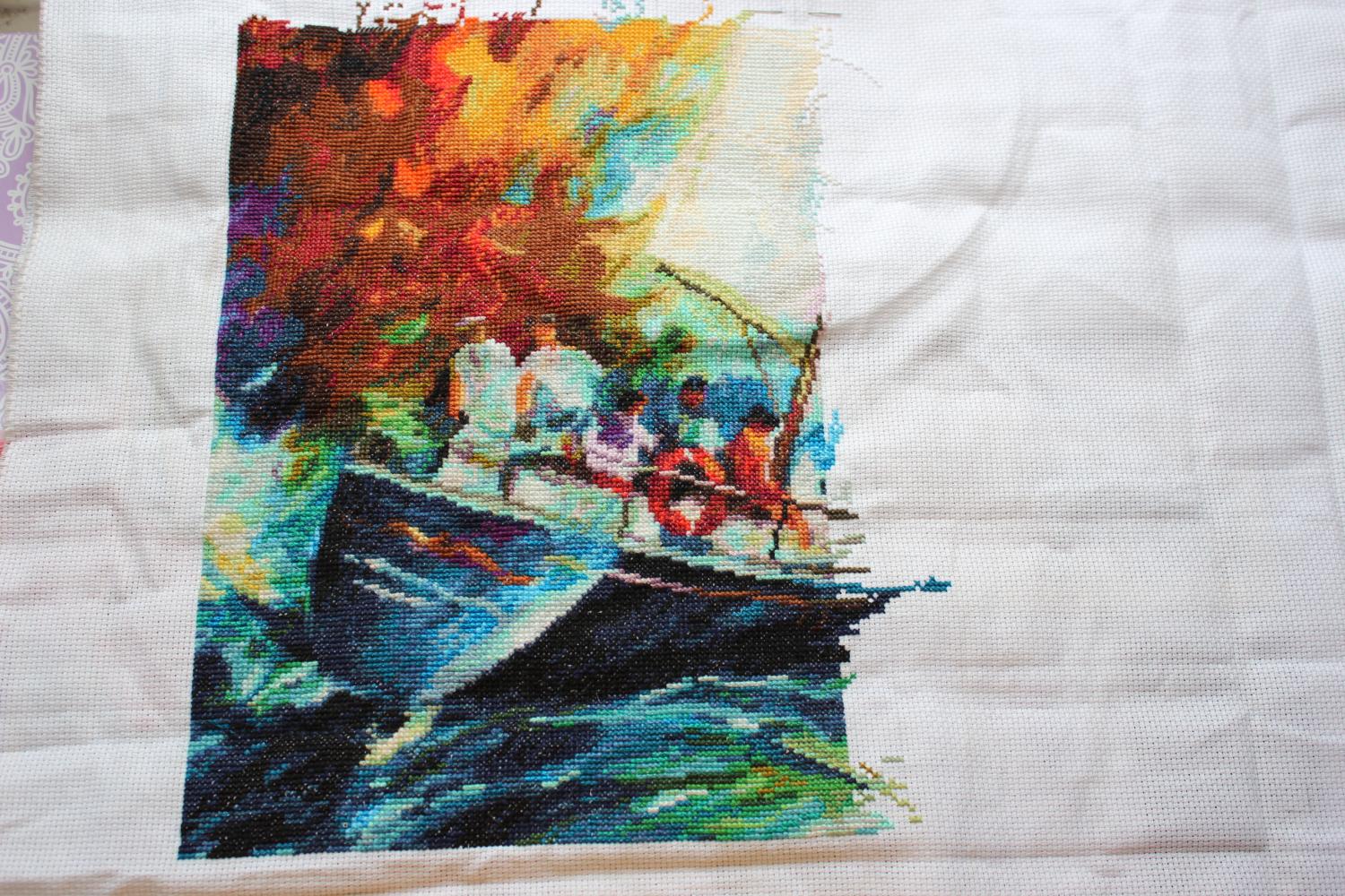 14 октября 2015 Девочки, привет! Что-то опять я игнорю еженедельные отчеты...все кажется мало сделано, нечего показывать. Так что отчет за две недели. Хотя все равно мало( 1.Горы движутся к завершению. Рассчитывала закончить их к ноябрю, но сомневаюсь что-то... Было/стало 2. У собаки увеличилось окошко. Поездки в сад закончились, дома сложно поймать момент дневного света( Надо опять по утрам время на нее выделять, хоть почуть. Было/стало Горы и собака - это мой шанс начать новый наборчик, поэтому буду стараться все-таки их заканчивать) 3. Ну а так как меня периодически мотает из стороны в сторону, пару вечеров шила Парусник от ЗР) Появился второй угол. Правая половина работы Уже, чем левая, крестиков на 20. Обалденные сочетания цветов. Волна появилась под лодкой... Было/стало 4. И - радость! Олька взялась потихоньку за Сноубордиста...после годичного перерыва появилось еще немного черненького, она вроде решила по цветам шить, должно быт интересно, только вот сколько лет это займет?)) Было/стало Из сада привезла вот такую салфеточку, жалко мне ее стало. Кто вышивал - не знаю, надо маму расспросить. Куда деть - тоже не знаю, будет пока в общем рулончике жить. А еще у меня на подоконнике продолжается лето) Пересадила в плошку помидорчик - черри, одна ягодка завязалась, и бутончики появляются. Правда неизвестно, созреет ли он, но смотрится очень трогательно. Вот и все, всем здоровья и чудесного, ничем не омрачаемого настроения! solnishko-ym, Сэйко, Каори и 15 других сказали спасибо Поделиться сообщением Ссылка на сообщение