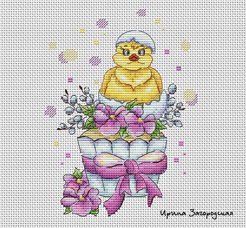 10 апреля 2019 И снова капкейк: "Капкейк с цыпой". Дизайнер Ирина Загородская. Размер в крестиках: 53х87. Размер капкейка с фоном: 65х88. Палитра ДМС и ПНК: 26 цветов + 1 бленд. Используемые стежки: крест, полукрест, бэкстич, французкий узелок. Katrin2511, nogres, maui и 9 других сказали спасибо Поделиться сообщением Ссылка на сообщение