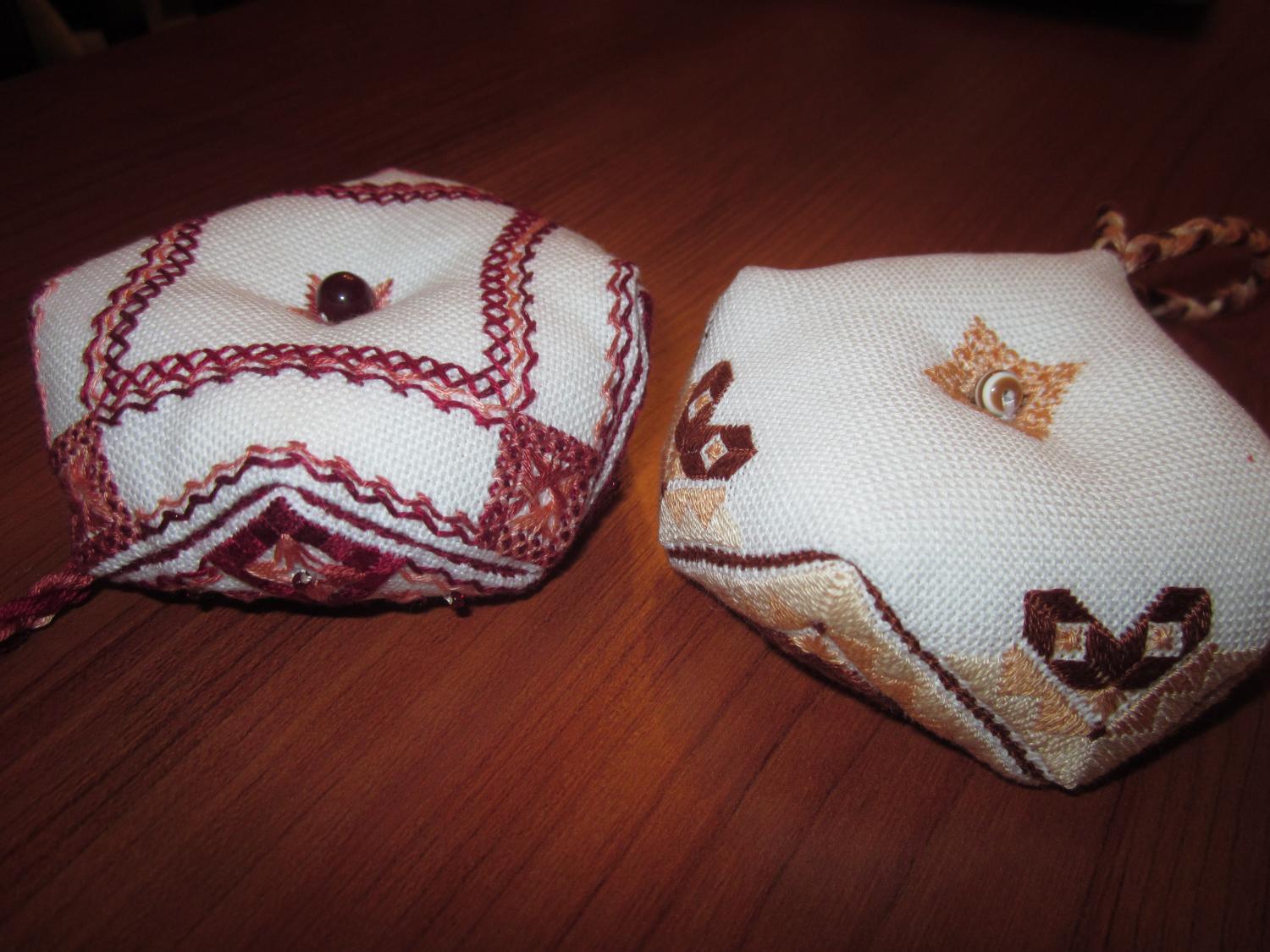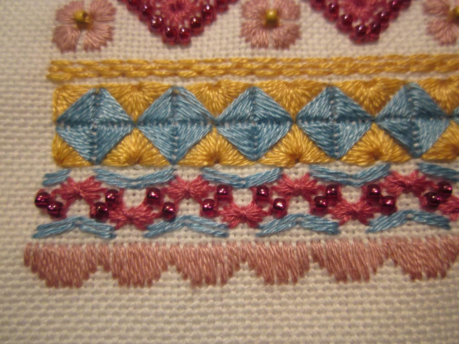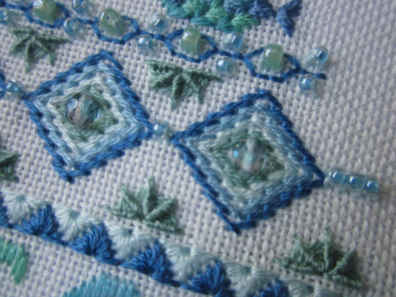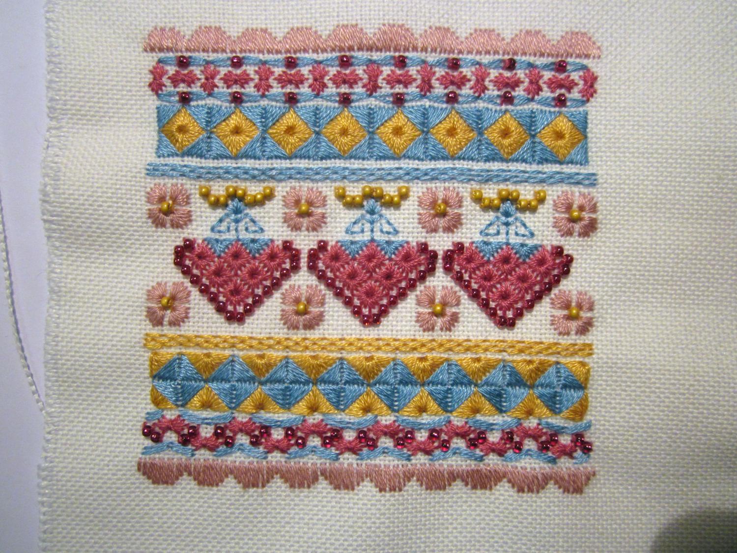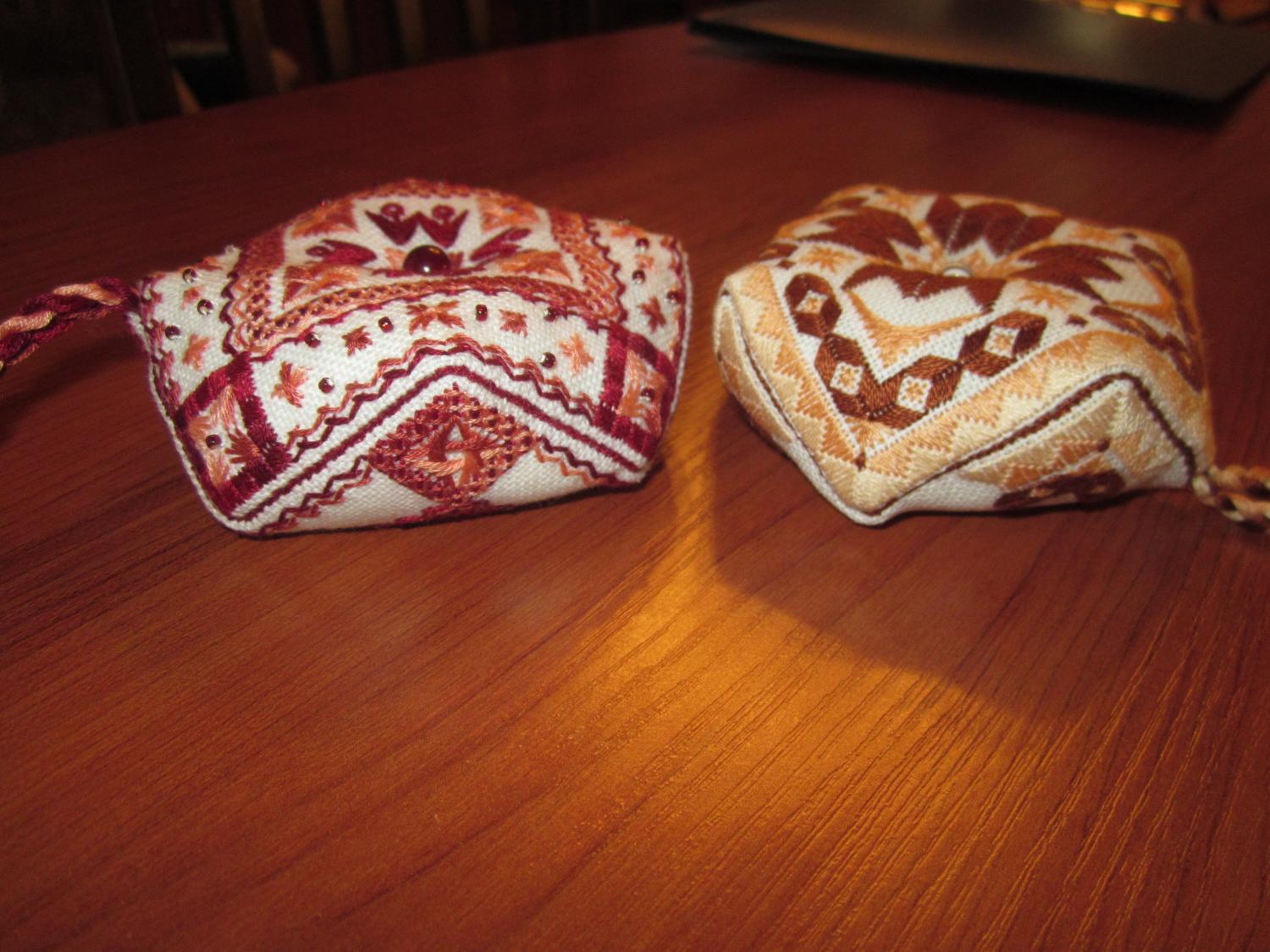 15 июня 2015 такс.... ну, наконец-то, в этой части Марлезонского балета я хочу показать то самое-убицца-об-стену-50-оттенков-серого-небо но сначала низ с бэком. Как и говорила раньше, бэк заменила с черного на темно-коричневый (забыла уже какой тон... 3371 что ль?) а вот и небо)) когда развернула, то поняла, что уже виден свет в конце тоннеля всего-то порядка 2500 крестиков осталось) ну и в целях отлынивания от неба было вышито: 1) Котик по набору Дивной Вишни чудесно вышивается, только нитки трудно закреплять на этой деревяшке (и Юля об этом писала раньше) 2) ну и шовчики - как же без них!!! это будущий батончик по схеме Ольги HDstitch нитки гамма и анкор, бисер - остатки от МХ наборов одного тона красного не было нужного кол-ва, поэтому в серединке - один цвет, а в рядах снизу и сверху - другой. Но цвета близкие и смотрятся органично вроде. Теперь бы еще разобраться как его сшивать Должно получится что-то такое: 3) ну и из старого - оформились в круглые рамки авантюрка и анютины глазки. которые я вышивала больше года назад и что-то про них подзабыла... подарю обоих кому-нибудь))) рамка большая, кстати, кривая... сколько ее не выдерживала под прессом - все же кривизна видна. если на стене висит - не прилегает плотно у цветочков рамка поменьше диаметром, но из той же серии чует сердце мое, что надо начинать что-то яркое параллелить....не вынесет душа поэта остатков серого неба alex_sterh, Дичок, Путешественница и 12 других сказали спасибо Поделиться сообщением Ссылка на сообщение