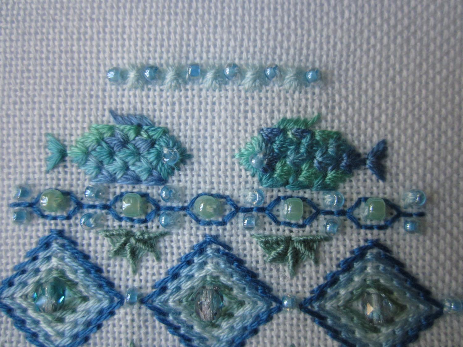 9 июня 2015 2а) сначала голубая Здесь долго и мучительно, распуская раз 5, вышивала первую рыбу... что-то она у меня не шла.. зато вторую вышила на одной дыхании))) еще трудно шел шов-паутинка - такие зеленые загогульки под рыбами все казались кривыми, но Аня сказала мне. что я придираюсь))) Ты точно придираешься ))) Нат, я ж начала морское яйцо, до паутинки все шло хорошо, а как до нее дошла - называется, приплыли )) В инструкции написано бэком - я ее сначала бэком и вышила, получилось вроде похоже, но не оно. Потом я вспомнила, что живу в 21 веке и у меня есть Интернет - пошла гуглить, поняла, что я вообще все делала не так, села распускать - а там же только под микроскопом, кое-как распорола, начала заново, а она, зараза криво получается, и все тут, короче, с пятого раза одну штуку кое-как доделала, кривая, и фиг с ней, у меня уже нервы и глаза не выдерживают ))) Поделиться сообщением Ссылка на сообщение