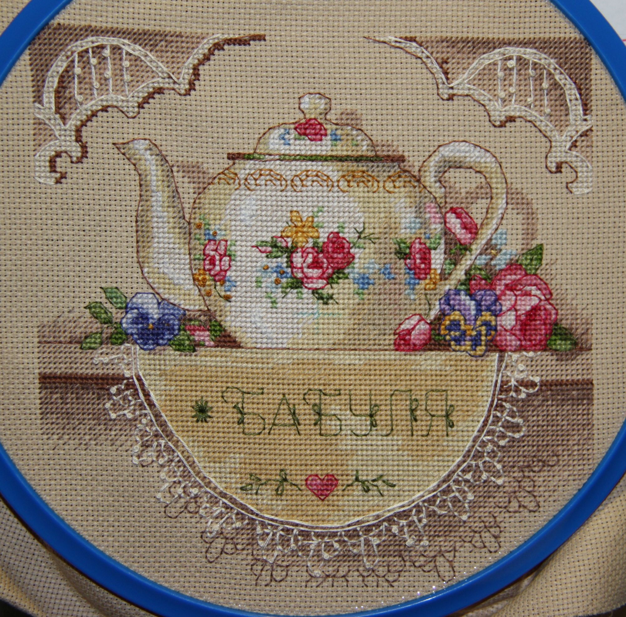 29 января 2016 Всем огромный привет!!! Я к вам не с пустыми руками На этой неделе я полностью посвятила себя чайничку , оставалось совсем чуть чуть, и хотелось скорее увидеть результат. Что я могу сказать, все таки мини голд это мини голд, если вы не любите каждую минуту менять нитку, то это не ваш набор. Цветочки пошли на ура и вскоре я перешла на бэк, это первый набор, когда я приступала к бэку 3 раза, и уговаривала себя закончить. Бэк в 2 нити, это кошмар, хотя на картинке производителя явно виднеется выкладная нить, поэтому пришлось выкладывать, лэйзи дэйзи вообще не мое, вся испсиховалась и на самом чайнике делать не стала. Надпись заменила, чтобы подарить своей маме, но не рассчитала немного, пришлось сделать вот такую звездульку)))) Бахрому тоже не рассчитала и как всегда накосячила, но все это тут же забылось, когда я увидела результат, а теперь показываю его вам, мои дороги)))) Ну и Фаня как и обещала, плюс Финя, раз уж фотоаппарат в руках был))) Lakis, irik9999, Бондаренко и 19 других сказали спасибо Поделиться сообщением Ссылка на сообщение