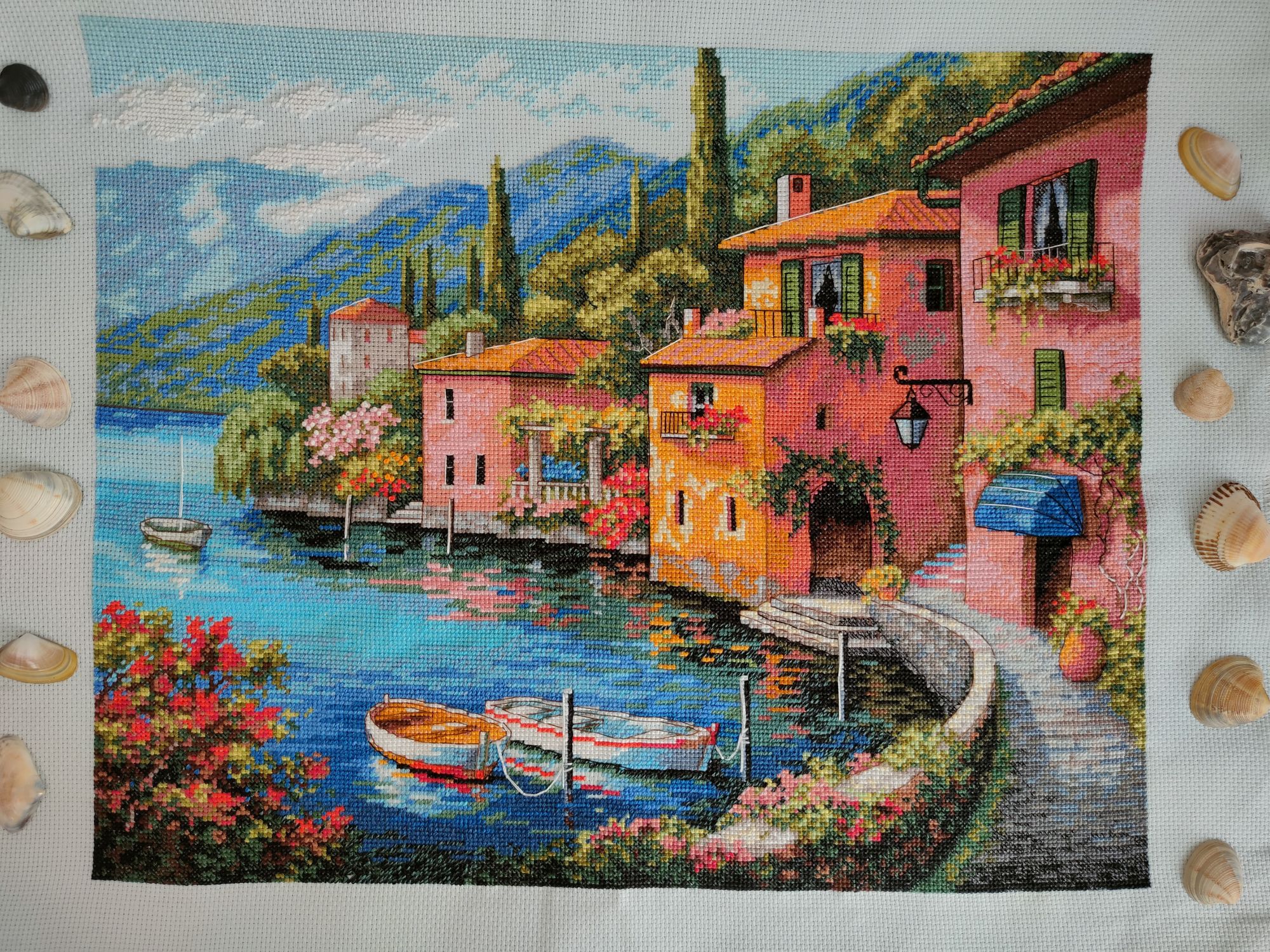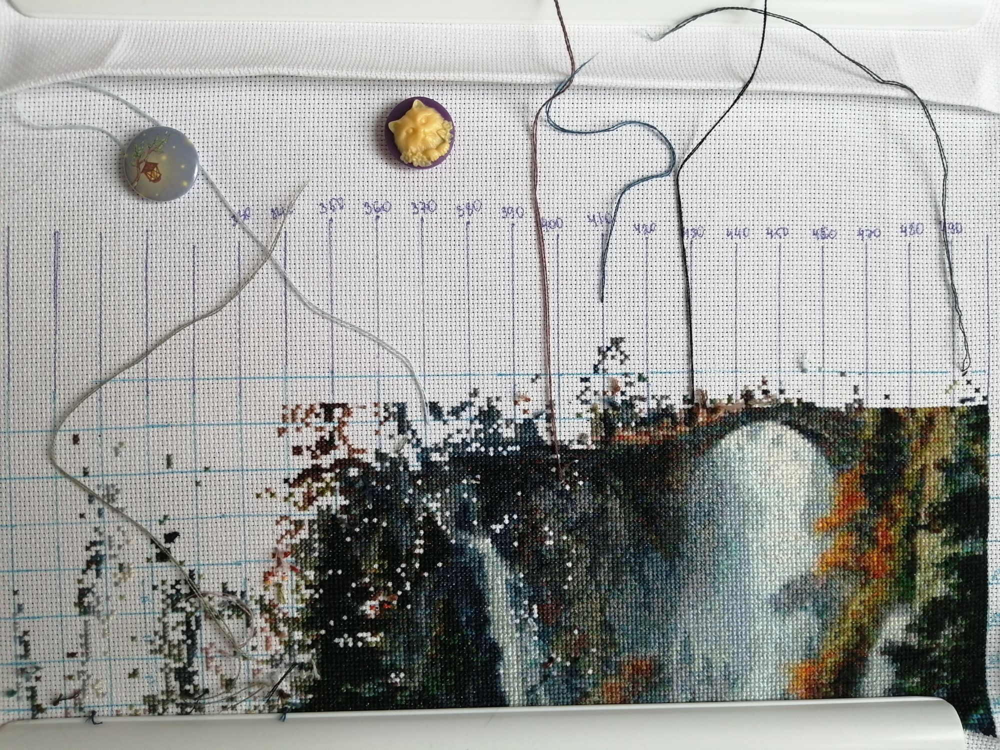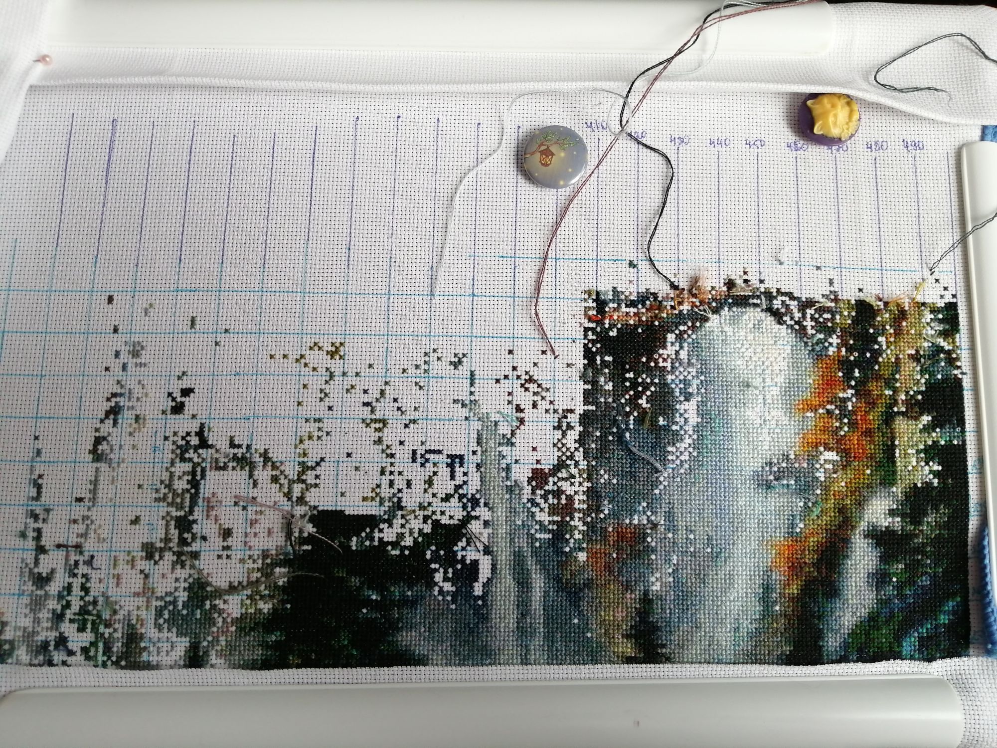 26 января 2022 Всем привет, я как всегда, ушла и не вернулась))) Я не с пустыми руками, деревня у озера оказалась в совместнике, поэтому тихонько двигалась на 200 крестиков до того момента, как Наташе наконец то не приспичило ее закончить вот прям сейчас, хотя бы в январе))) Таким образом там уже 70%, и я с невероятной скоростью штопаю дальше Прошу прощения за хвосты, на станке не получается нормально крепиться, зашиваю следующими крестиками. Мережка тоже не отстаёт, хотя ей сейчас мало времени отходит, но по площади это почти половина. Продолжает нравится процесс, будет следующей на завершение, так что болейте за нее))) Ан4оус, Каори, Egelia и 7 других сказали спасибо Поделиться сообщением Ссылка на сообщение