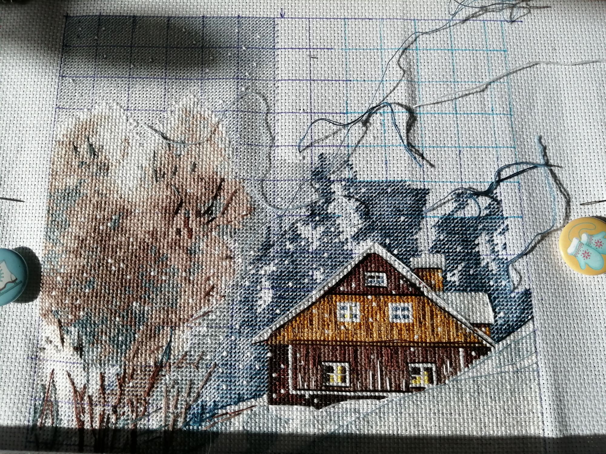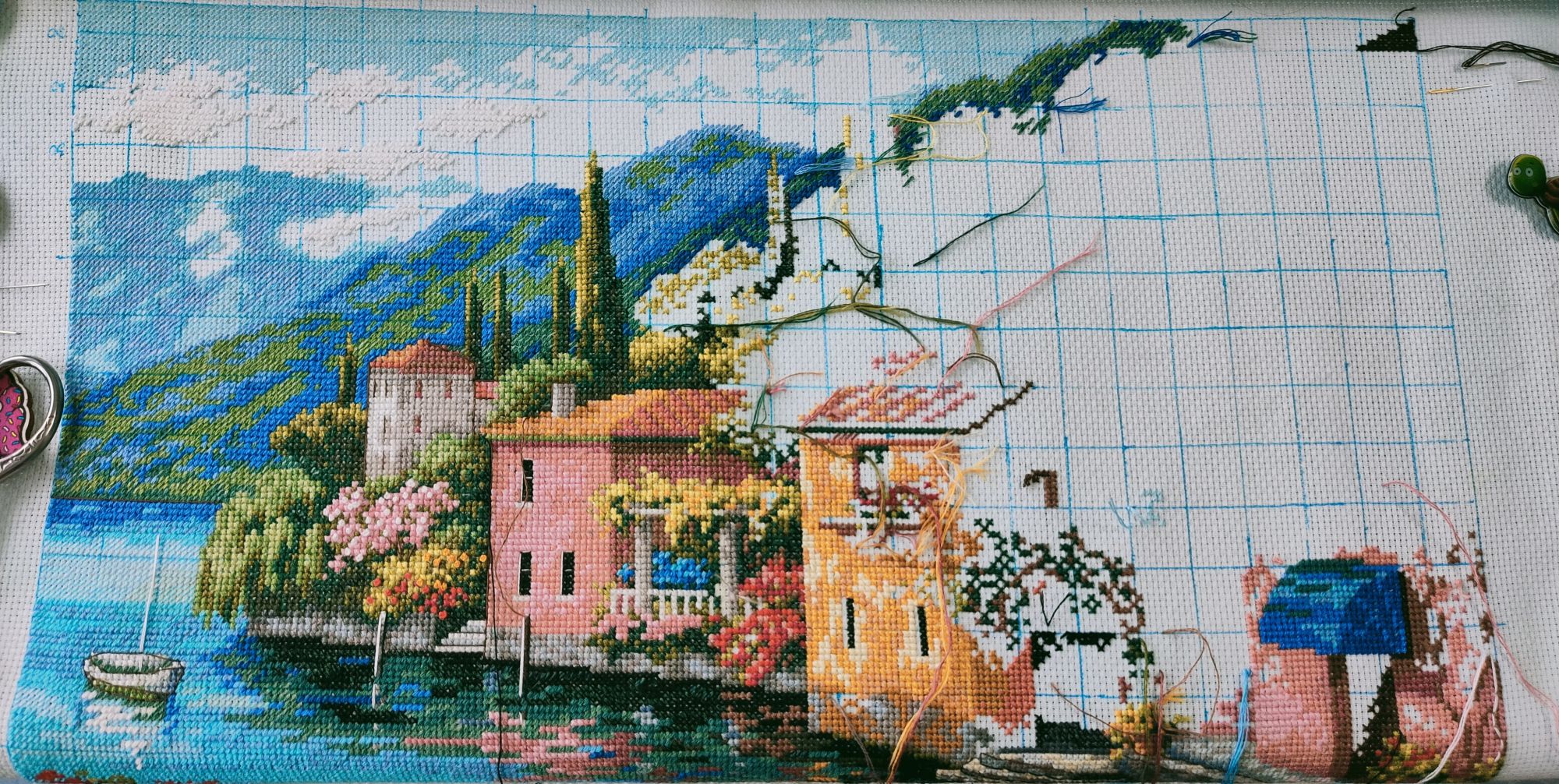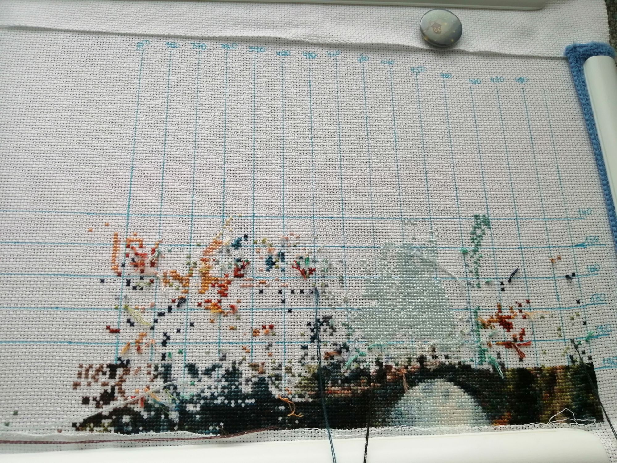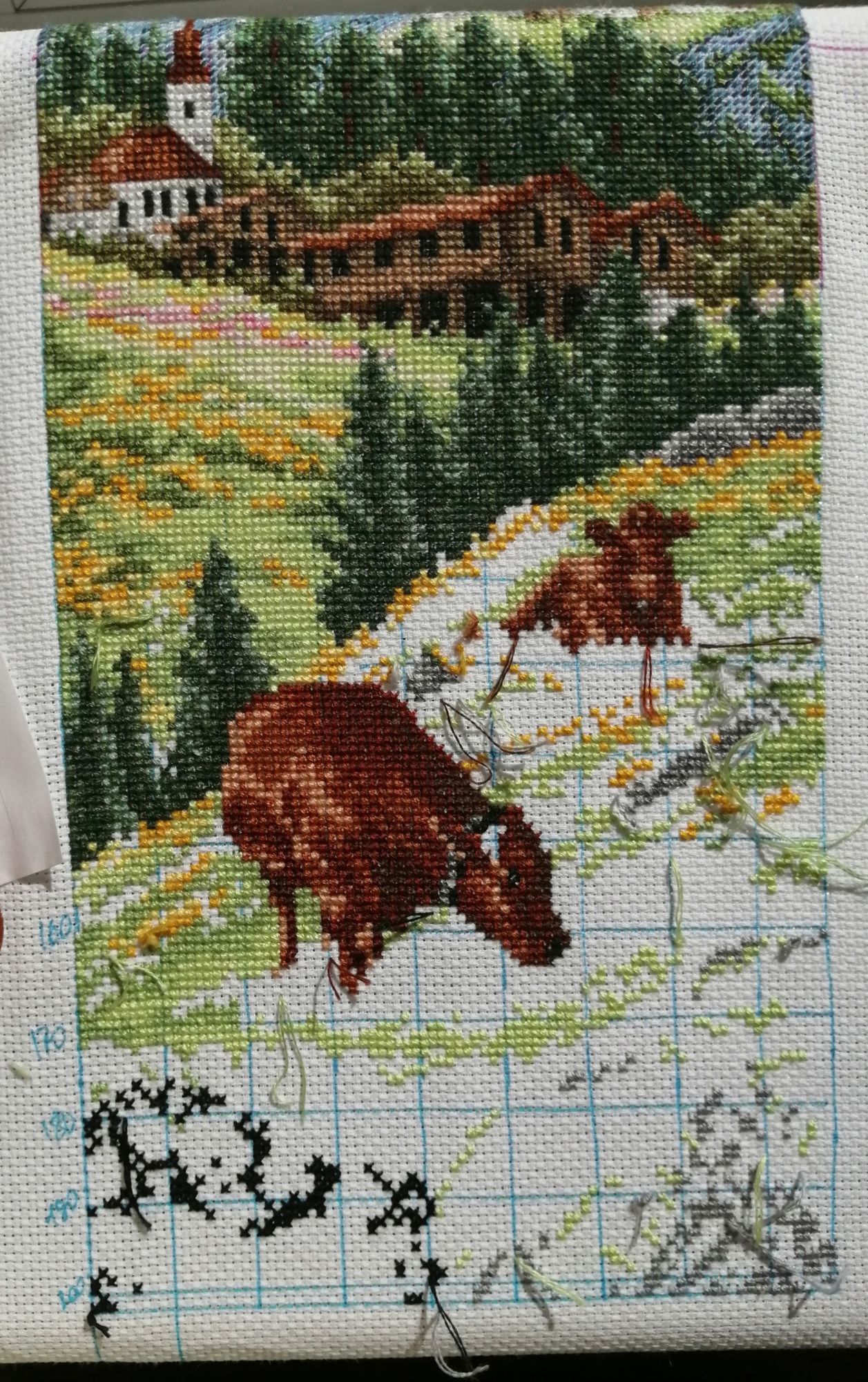 26 января 2022 Всем привет, я как всегда, ушла и не вернулась))) Я не с пустыми руками, деревня у озера оказалась в совместнике, поэтому тихонько двигалась на 200 крестиков до того момента, как Наташе наконец то не приспичило ее закончить вот прям сейчас, хотя бы в январе))) Таким образом там уже 70%, и я с невероятной скоростью штопаю дальше Прошу прощения за хвосты, на станке не получается нормально крепиться, зашиваю следующими крестиками. Мережка тоже не отстаёт, хотя ей сейчас мало времени отходит, но по площади это почти половина. Продолжает нравится процесс, будет следующей на завершение, так что болейте за нее))) Ан4оус, Каори, Egelia и 7 других сказали спасибо Поделиться сообщением Ссылка на сообщение