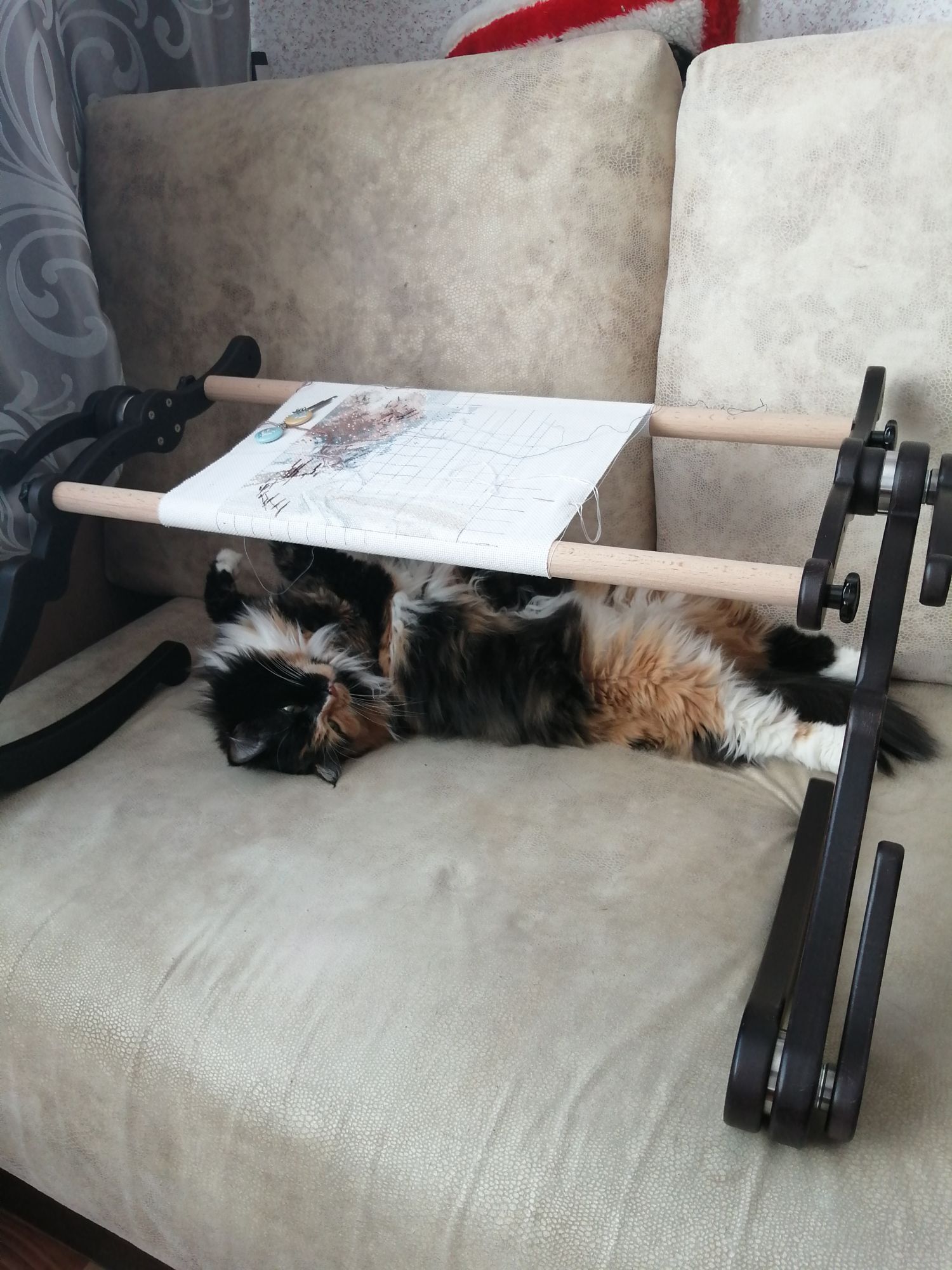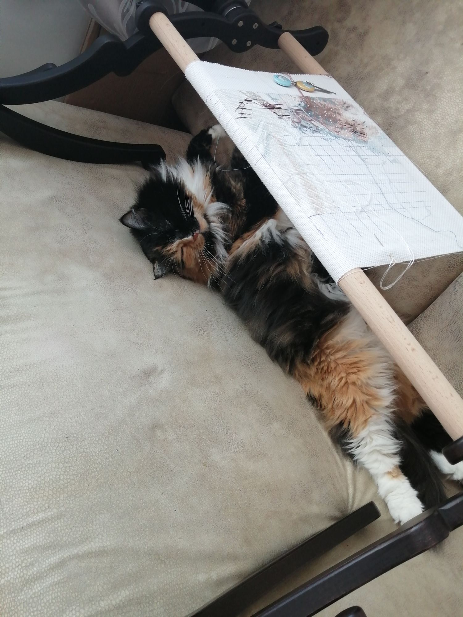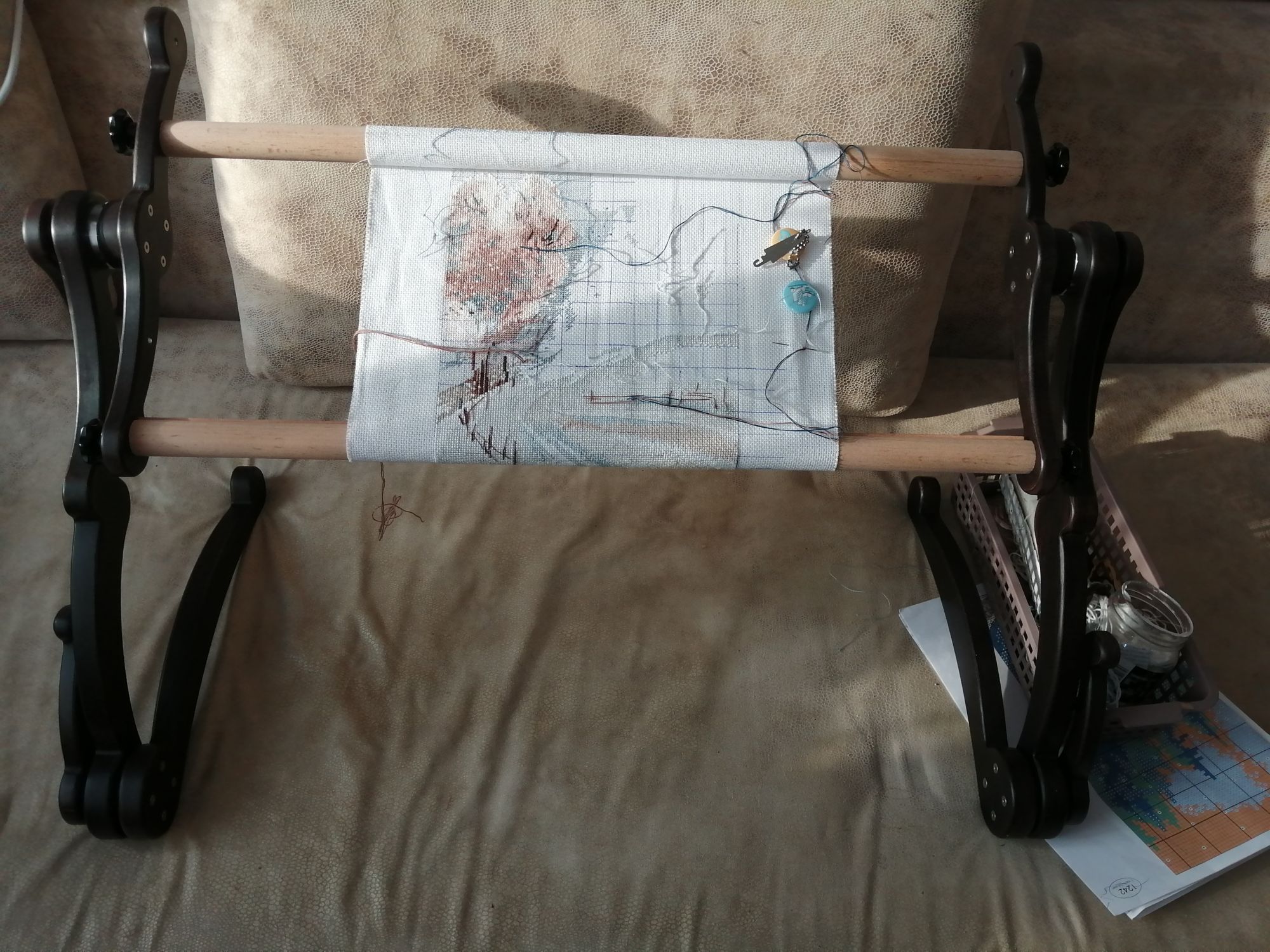 30 марта 2021 Привет, привет, вот не выложишь отчет сразу, и потом никак мысли не соберешь. Овен Зимняя тишина 124 (ГОТОВО) Как всегда, когда чувствуешь, что вот вот финал, скорость нарастает с невиданной силой. Финиш случился 20 марта. Все таки овен -это не процесс, это результат, он действительно стоит всех мучений))) Конечно же готовые работы я сразу отдала заказчице, она в восторге, буду ждать фото на фоне точно такого же, но реального домика. Пока одна коллега радуется, другая тоже захотела. Но у меня уже нет сил вышивать на заказ, поэтому я с легкой руки отдала уже давно законченные работы. Глядишь теперь никакого "рулона")))) Одни недошитые старички, к ним и приступим В основной процесс ушли новобрачные, я конечно смотрю на них с умилением "Боже, что за уродцы"))) Но они такие масштабные, что их точно надо дошить. И подарить человеку, который не поймет, что тут что-то не так))) Так же за 2 недели я чуть-чуть повышивала: (НЕ ДЛЯ ГАЕЧКИ) Спи моя радость: Очень интересный процесс, но все никак не могла к нему приспособиться, в последний раз получилось вышить много одним цветом, может так и дальше пойдет. Вы уже видите крылатого насекомыша?:) Трио лошадей. Наконец я начала получать от них удовольствие . Напомню, это подбор, изначально я начинала их вышивать на 14м каунте, как и положено. Мне не нравилось, да и желание стало сбываться немного не в мою пользу))) Второй заход - 16 каунт, и! фон в 6 нитей, в 6!!! Я пыхтела и мучилась, как те ежики. Но перед рестартом я выпорола полукрест в 6 нитей и начала в 4, сразу процесс пошел как песня. На этой неделе должна прибавиться тысяча крестиков, сейчас все го лишь 300, дойду до 3го угла этой работы. Dragonfly37 Маша, совсем неожиданно подарила мне на др брошку от кристал арт, мы давно их просматривали, обсуждали. Спасибо, Машуля, это безумно приятно и классно. Уделила ей несколько часов, результат очень интересный и красивый. Пока вырезала, отрезала нитку, пришила бисер обратно и отложила))) Ну и в качестве подарка на др, и с легкой руки той же Марии))) у меня в закромах появился анкор, безумная красотища. Так же я полностью улучшила свой станок креплениями для планшета и телефона, все купила в Ашане, вдруг кому то будет полезно Вот и все, хорошей вам недельки))) Lady_flame_))), Selinta, АннаСергевна и 10 других сказали спасибо Поделиться сообщением Ссылка на сообщение