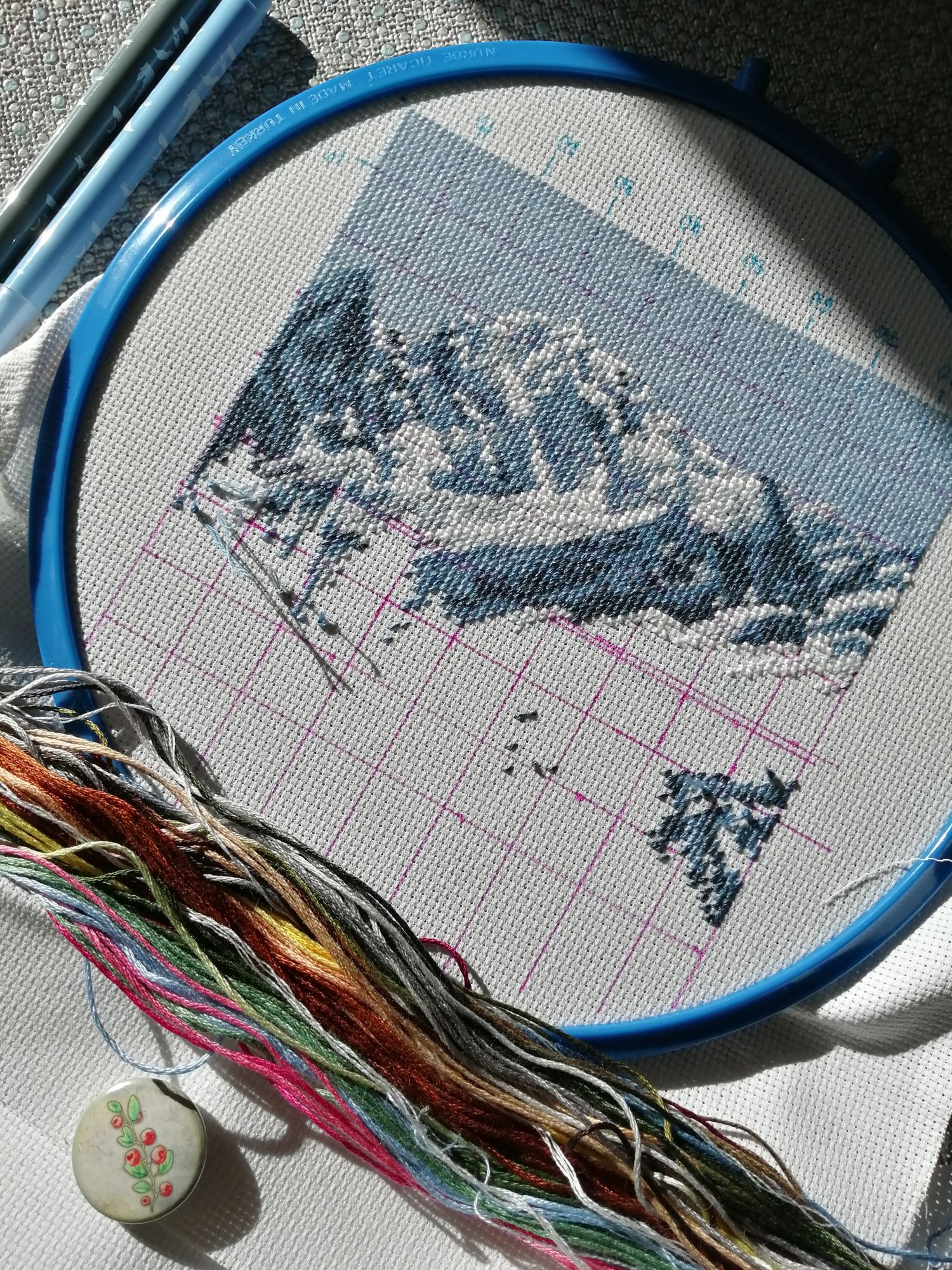 10 мая 2021 Всем привет, я как всегда, пропустила один отчет и исчезла на месяц)))) Но я снова с вами, и мне есть что показать. Начнем с того, что я вышла из сопротивления размножению, потому что не смогла вышивать ни новобрачных, ни лошадей, ходила страдала целую неделю и все таки открыла анкор))) Решила начать с коровок. Anchor PCE0811 Swiss Alpine Landscape Ну что ж, это мой первый Анкор, отличная канва, отличные нитки и странные планшетки, но коровок я так и шью с них, в принципе нормально. А вот с оригинальной схемы не смогла((. К овечкам кстати перенабор не нашла, видимо надо вспоминать прошлое и брать у ребенка фломастеры))) Мне очень нравятся оттенки, но пока превью смотрится намного приятнее отшива, очень надеюсь, что финиш меня порадует, а то уже закрались мысли кому-нибудь подарить... Также по выходным раз в 2 недели я продолжаю вышивать Раманова Елена (Химера) #10305, Ривендел Раньше норма хорошо вышивалась, берешь черную нитку и вот тебе 500 крестиков, а теперь ковыряешь одиночки, тратишь 2 часа и вот тебе 170 крестиков))) Решила ползти наверх к небу. Так же за это время я уделила свое внимание: Dimensions 35312, Northern Night Канва какая то слишком мягкая, полукресты утягивают ее, идет хорошо, но сильной любви к процессу нет. Dimensions 35091, Лошадиное трио У лошадок хорошие продвижения, но никак они не хотят в основной процесс. Dimensions 03895, Скалистый берег (Rocky Point) (В гаечке лишние 2 последние фотки, они от миника) Почти полностью выбила один цвет, все таки здорово вышивать на плотной 18й канве, полукресты одно заглядение))) Сегодня я достала деревню у озера, ой как же я скучала по ней, такие шикарные цвета, голубая канва, моя любовь. Но покажу уже в следующий раз. И не так давно я получила посылочку с 2мя заказами, и не удержалась... Первый опыт- носочек)))) Я так подумала, что именно этот будет Тимин, Dimensions 08986 Santa s Truck Stocking Первые ощущения: ОООО какие ниииитки, какая картинка))) Потом, фууу глянцевая схема (ура , перенабор), и фууу канвой можно забивать гвозди)))) Благо у меня еще остался вернель, которым я стирала нитки овна, и он мне кстати отлично помог, тряпочка стала мягкой и податливой, но она как то странно тянется... Похоже я соскучилась по 14 каунту, правда теперь он мне кажется каким то гигантским, последнее время очень привыкла к 16му, с ним мне очень комфортно. Так же мне не хватало основного процесса, который можно с собой по всюду таскать. На диванном станке сейчас коровки, на горыныче я вышиваю все остальные большие процессы. Поэтому носочек стал моей отдыхалочкой. И вчера мне удалось решить одну проблему, я уже давненько при смене процесса сломала у снапов (они hemline у меня) сам уголок, который починить было не возможно. Оказалось, что гамма стала выпускать аналогичные снапы, именно белые, 15*15 я вчера в лео купила за 250 руб, уголок отлично подошел. Сами hemline 28*28 стоят где-то руб 700 на озоне. Но у гаммы мне не понравились сами зажимы, очень плохо вырезаны, есть зазубрины. Поэтому они у меня остались как расходник. Вот и все, рассказала обо всем))) Постараюсь больше не пропадать. Всем хорошей недели! Наталья2013, irinka-mandarinka, Путешественница и 9 других сказали спасибо Поделиться сообщением Ссылка на сообщение