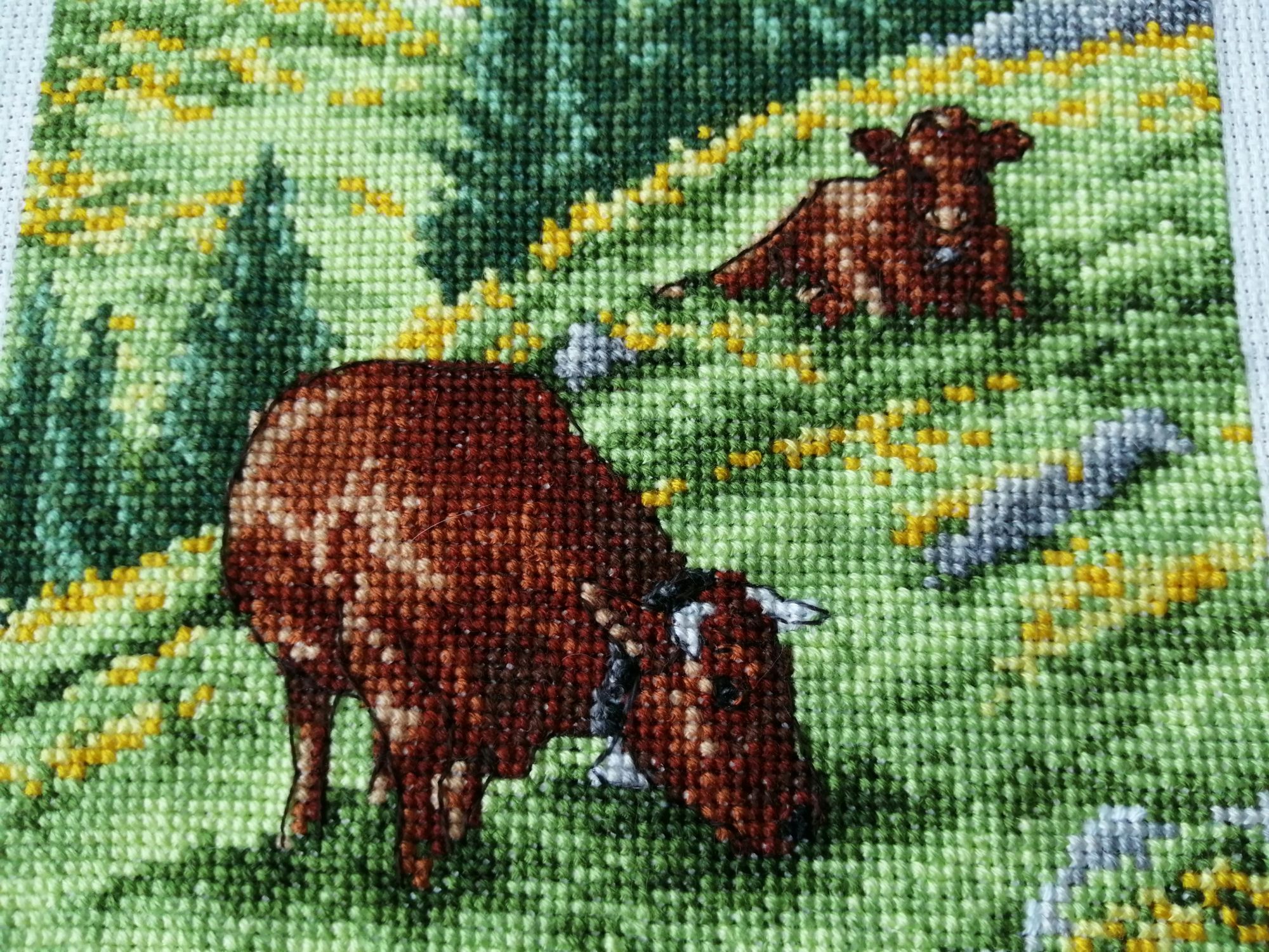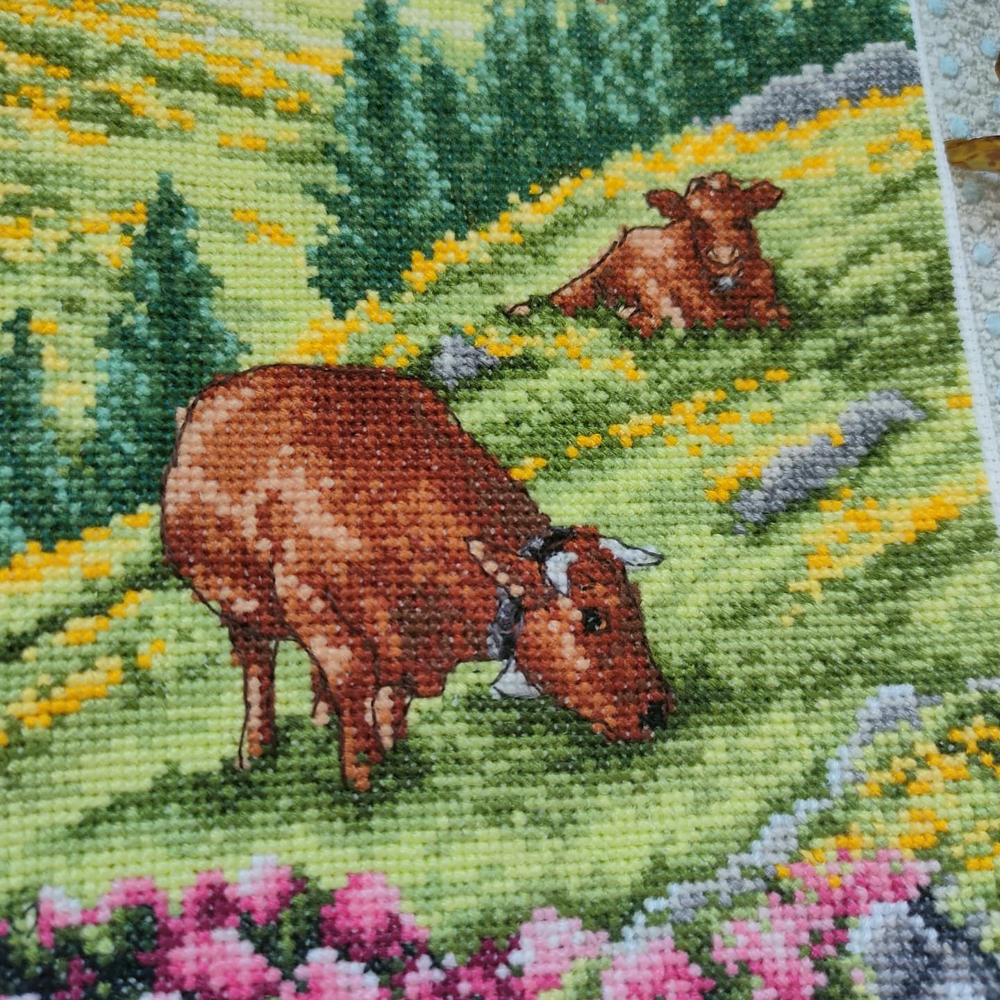 18 мая 2021 Всем привет. Да, кажется коровки начинают в себя влюблять, не хочется вылезать из-под станка))) На данный момент в них осталось совсем чуть чуть, но я покажу их в своём субботнем состоянии. Anchor PCE0811 Swiss Alpine Landscape Ещё на прошлой неделе я решилась на большую покупку. Теперь у меня есть самокат (обычный), и каждый вечер мы ходим кататься к Леруа (который очень удачно рядом с нами расположен и имеет огромную парковку))) Тима уже катается на 2х колёсах (ему тоже заменили велик на большой), поэтому вечер стал более занятым, но не менее приятным. В том году я очень боялась самоката, но сейчас я кайфую. Вот и все, в конце недели покажу готовых коровок, ну и конечно сразу начну овечек))) Хозяйка смешных зверей, Путешественница, Dragonfly37 и 5 других сказали спасибо Поделиться сообщением Ссылка на сообщение
