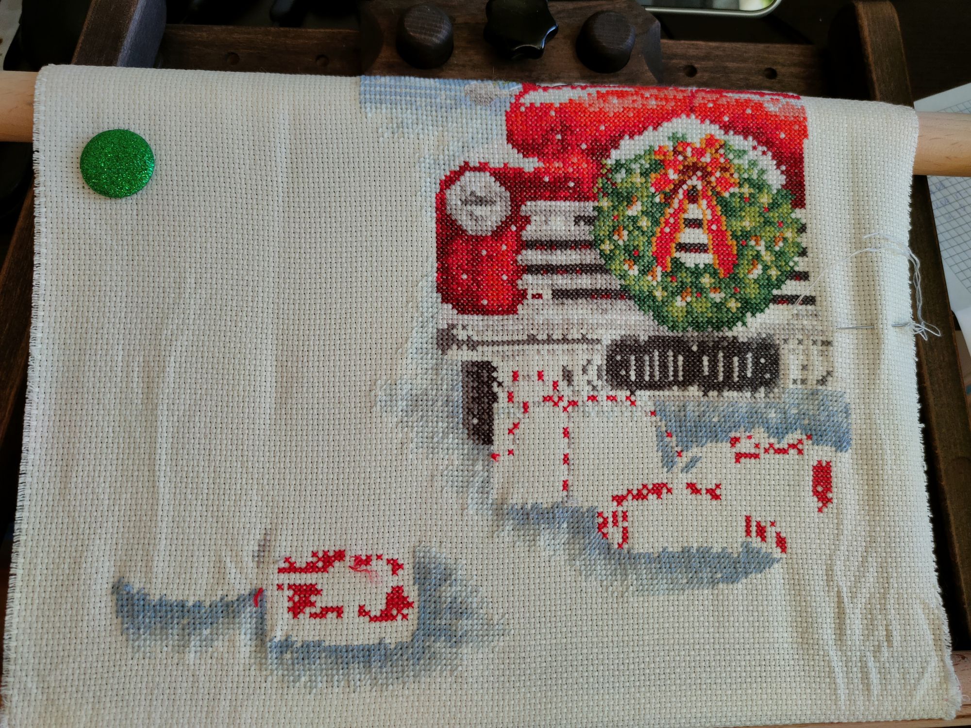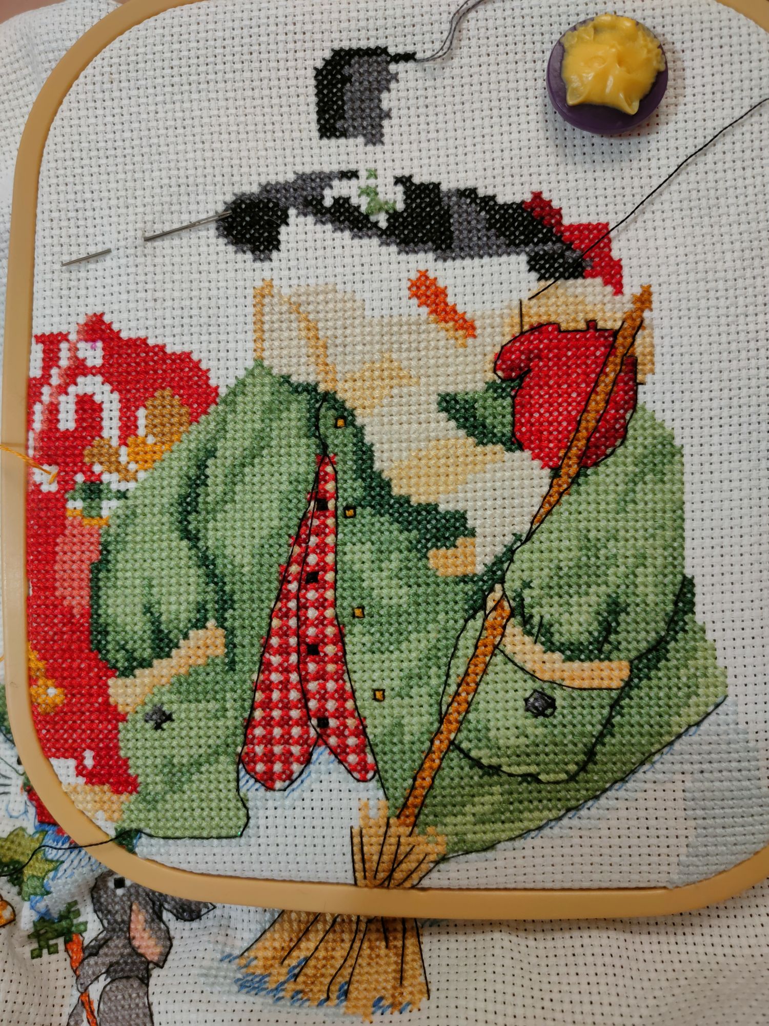15 марта 2021 Всем привет. Я продолжаю капать сугробы и уже думаю, пока не дошью, зима не уйдет))) Поэтому за неделю норму перевыполнила. К ниткам привыкла, благо катышек нет, канва хорошая. Но вот органайзер гаммы а-ля пако уже потерял 3 подушечки, нитки вытаскиваются очень плохо. Из крестиков осталось всего полторы тысячи, скоро будет домик. Жду не дождусь ярких желтых ниточек. Овен Зимняя тишина 124 В эти выходные я завершила выделенный участок на Ривенделле, радости как будто всю работу закончила))) А по факту это всего лишь 11% всей работы, перешла чуть левее и решила вышивать областями поменьше, а то тянуться далеко. Цвета шикарные, все таки ниточки схс очень приятные в работе. Вышиваю уже больше 3х месяцев и работа совсем не надоедает, надеюсь, так и буду вышивать и обязательно ее закончу. Раманова Елена (Химера) #10305 Ну и про дубко. У меня уже больше года Змей Горыныч с лапками. Удобно, если есть свое место (стол), где можно разместить свое добро. У меня это стол раскладушка, где стоит ноут, все мои записные книжки, емкости для ниток и прочая приблуда. Горыныч стоит стационарно, сверху на него ставлю планшет. Лапки позволяют менять работу в одну секунду, но неудобна их толщина, при вышивке с краю приходится очень сильно подворачивать руку, либо смещать снапы правее. Можно зажимать пальца, мне показалось удобно зажимать только нурге за ручки. Большие пяльцы у меня сильно вибрировали, либо в кучу собирается ткань. На нурге вышивать классно, ничего не мешает кроме круглой формы))) Прямоугольные нурге только жду, попробую и с ними. Почему я купила 2й станок? Так как работа сидячая, и дома вышиваю сидя за столом, стала часто болеть спина, да и постоянно сидеть в одном месте уже надоедало. Поэтому я выбрала Илью Муромца и без лапок, чтобы на нем была основная работа и я могла сидеть на диване хоть с вытянутыми ногами, хоть нет. Сейчас, когда мы на больничном и я работаю за своим столом, очень приятно переместиться с вышивкой вечером на диванчик и посмотреть кино. Натяжка с палочками пока мне не сильно поддается, но с опытом думаю будет получаться быстро. Маленькая работа даже без боковой отлично натянута. Но я с толкнулась с проблемой куда подсунуть планшет и мне нужен доп свет. С этим буду разбираться и искать доп оборудование. А так все отлично, вышиваешь 2мя руками. Для себя сделала вывод, если придумать себе столик, то вполне и с горынычем можно пойти на диван. Или все таки брать Добрыню, ставить на пол и куда хочешь, туда и иди с ним. Из под станка выпрыгивать не удобно))) Пока все отставишь. В принципе я покупкой довольна, еще немного модернизировать и будет шикарно. Хозяйка смешных зверей, Selinta, Dragonfly37 и 10 других сказали спасибо Поделиться сообщением Ссылка на сообщение