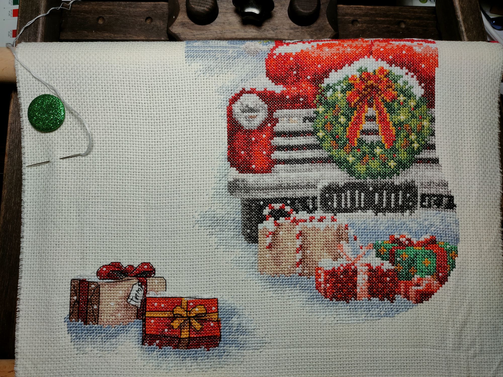 18 декабря 2021 А вот и я))) Всем привет, я с сапогами))) Dimensions 08714, Санта и снеговик Очень милый носочек, влюбил в себя после готовности котика, мой первый опыт сшивания. Первый блин не совсем комом, но 2й буду шить совсем по другому. В планах был 3й носок для себя, но скорее всего уже до конца следующего года там и останется. Dimensions 08986, Santa s Truck Stocking Просто любимый и красивый носочек Мережка К-151 Colorful Rowan Сделала перенабор , теперь быстрее пойдет процесс, красивые нитки, яркий результат. Так же продолжаю вышивать другие процессы, как поймаю хорошую погоду, обязательно сделаю красивые фото. Всех с наступающим новым годом пусть вас ждёт только счастье! ole4k@, Путешественница, Дикая белочка и 11 других сказали спасибо Поделиться сообщением Ссылка на сообщение