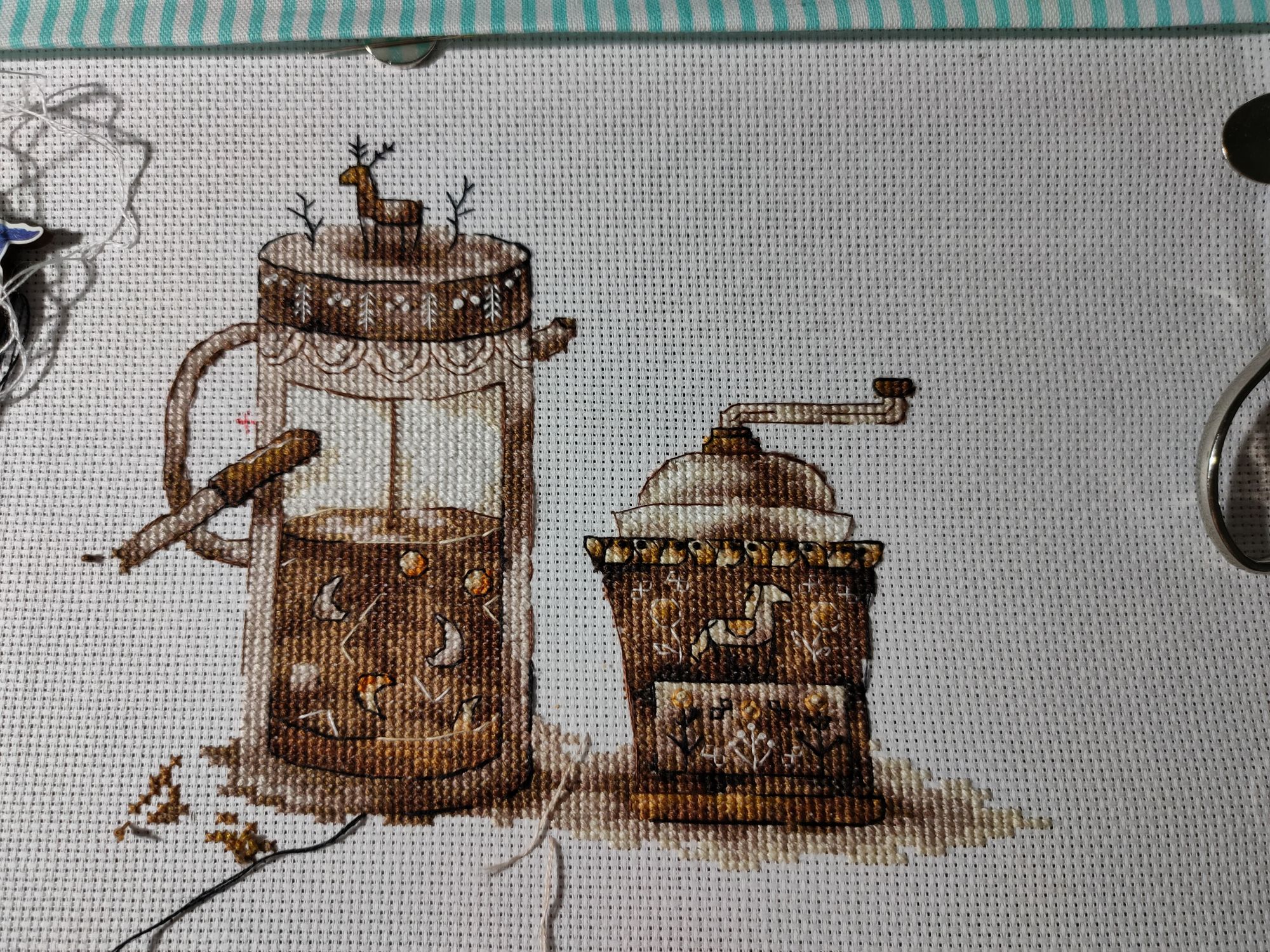 6 мая 2022 Всем приветик , весна движется к завершению, а я пришла с финишем первого зимнего сюжета и кучкой новеньких процессов . Начнем пожалуй с финиша. Я наконец домучила носочек Dimensions 8738, Early Snow Cardinals Верхняя часть сюжета шла бодро и весело, быстро появлялись красивые элементы. Нижняя часть радостно закончилась на девочке кардинале, а потом началась "жесть", я могла вышивать максимум 300 крестиков в день, с учетом того, что были выходные и майские праздники. Весь мой подбор ниток закончился еще на первой половине сюжета, поэтому трава и ягодки вышиты аж тремя вариантами аналогичных мулине (делать подбор подбора то еще удовольствие))). Как только был закончен бэк, я с радостью отложила тряпочку и пошла заниматься домашними делами. В целом на фото выглядят красиво, в живую смотреть на них пока не хочу, убрала в рулон))) В ближайшие выходные буду сшивать этот носочек и машинку, так что ожидайте))) Параллельно по 300 крестиков в неделю вышивалась Северная ночь, мой любимый Лосик. Дошла до палатки, получается отпадно, от процесса одно удовольствие. И это 20% работы Dimensions 35312, Northern Night Мережка так же отлично вышивается, ушла в основной процесс, как будет логичный участок дошит, сразу покажу. Ну и самое интересное))) Вы знаете, что я вышиваю схему Химеры - Ривендел, не показываю, потому что все вышитое в его масштабе совсем не значительно, как закончу участок, так сразу покажу. Так вот, изначально при покупке я выбрала канву и 16й каунт, все было прекрасно. И я не смогла удержаться от новинки от Смолты стич, купила схему, заказала схс (когда это стоило 5 руб) и канву аида 16 каунта. Даже сделала 5 крестиков на радостях.Но в связи со всеми событиями, меня очень пугает перспектива оказаться без тканей Zweigart, а я так и не попробовала конгресс страмин. ИИИИ, купила, и начала на нем, и влюбилась.... Smolta stitch ss-365 400*534 крестика, на конгрессе 42*56 см, поместилась на раме от дубко в 60см (и уже хочу раму больше) Подпольное название Конь))) Куча ниток, вышивка полукрестом, идет легко и приятно, цвета пока получаются слишком яркими, но надеюсь в итоге все будет супер. Вышивать очень круто, хотя не быстрее крестика, и теперь я жалею, что Рив на канве начала, но теперь уж перешивать не буду. Потом... на день рождения Мария мне подарила набор от Волшебной страны Волшебная страна FLK-301 и раз у меня теперь есть свое рабочее место, где я могу раскидать бисер, я конечно не удержалась и сразу начала вышивать. Получается ооочень красиво, надеюсь так же побыстрее завершить данный процесс (опять зима в процессах) Ну и вот так меня разнесло по сюжетам, но даже этого оказалось мало. Попав на новый для меня канал "День вышивки", и что вы думаете? Да, я влюбилась в лонг дог... Life After "Death" от Long Dog Samplers LD88 Выбрала Zweigart 3984/7011 Murano 32 silvery moon, в леонардо попала на распродажу пнк, вчера начала вышивать, какой кайф, одной ниткой, небольшие подсчеты. Этот процесс будет отдыхалкой от всего на свете)))) Теперь самая большая проблема, как это все уместить в ротацию)))) Всем добра и обнимашек, от Фини привет, а я скоро вернусь с носками и мережкой))) Каори, Хозяйка смешных зверей, Сибирская Кошка и 7 других сказали спасибо Поделиться сообщением Ссылка на сообщение