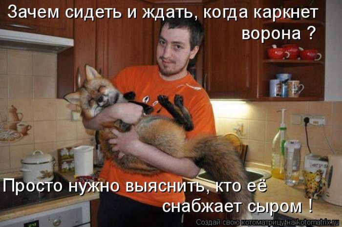 21 апреля 2014 C просторов инета Предыстория истории. У меня сестра мелкая очень любит кота тискать. Он идет мимо, она вопит: «Вася!!!» и обнимать его так, что у бедолаги аж кости трещат. И так раз по 7-8 в день. Долго кошак терпел, очень долго (он ее царапал пару раз, но получал за это по шее). Прихожу сегодня домой и наблюдаю картину… Васька активно трется об ковер, его жутко бьет током, он орет, но продолжает тереться. Потом весь такой взлохмаченный идет и ложится на кресло. Я уж подумал, что сестра ему мозг окончательно расплющила. Заходит в комнату моя сестра. Ну, все как обычно, «Вася!!!» и бегом к нему. Кот, который обычно старается спастись бегством, ни с места. Через секунду я понял почему: мою сестрицу так дернуло током… Что она от него кубарем откатилась. И ведь не придерешься к нему!! Проделав это еще раз 8, кот отвоевал себе спокойную жизнь. Как же он, ..., додумался?!! Aleksandr Cross-stitch, Elvica, bukina88 и 18 других сказали спасибо Поделиться сообщением Ссылка на сообщение