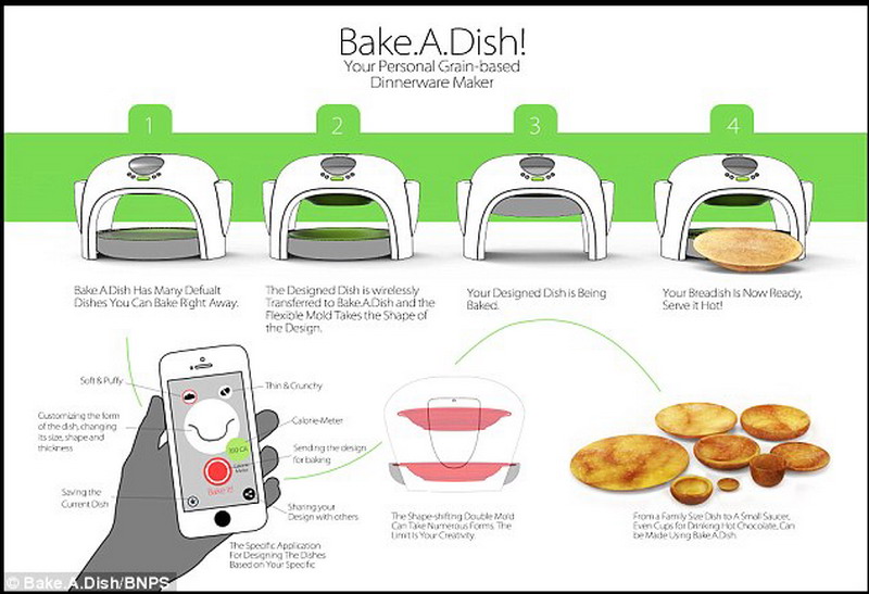 30 мая 2014 Не хотите мыть посуду? Покупайте новый гаджет! Устройство Bake.A.Dish может сделать из хлеба посуду, способную заменить все миски и тарелки в доме, и в которую можно разливать и насыпать всё — от супа до карри. Гаджет производит посуду любого размера до 41 сантиметра в диаметре, которую затем можно съесть в конце трапезы. Всё, что вам для этого нужно – это мука, вода и солнечный свет, поскольку гаджет питается от солнечных батарей. И всё это обходится значительно дешевле средств, затрачиваемых на мойку посуды. Bake.A.Dish — это разработка студента Саида Рахиминеджада из Тегерана. Проект иранского студента, специализирующегося на промышленном дизайне, из-за революционного подхода претендует на премию Electrolux Design Lab 2014, и в настоящее время Саид ищет финансирование, чтобы внедрить свою концепцию в производство. Хотя первая мысль, которая появляется при виде такого рода посуды – да она не в состоянии держать жидкость! Но автор успокаивает – в рецептах имеются секретные компоненты, обеспечивающие решение этой задачи. Bellatrix, Магнуна, Aleksandr Cross-stitch и 8 других сказали спасибо Поделиться сообщением Ссылка на сообщение