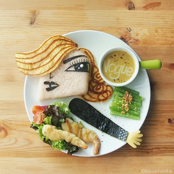 21 июня 2014 Знаменитые и съедобные: портреты на тарелке. Для Саманты Ли продукты питания – это не только просто вкусная и полезная еда, но ещё и материал для художественного творчества. Из них она создаёт съедобные портреты знаменитостей. Саманта не повар, она не посещала никаких кулинарных курсов и создаёт свои аппетитные произведения просто ради собственного удовольствия. “Сначала я делаю наброски на бумаге и тщательно рассчитываю всё, что мне пригодится, чтобы продукты не пропадали даром, – рассказывает художница. Инструментами для меня служат ножницы, ножи и зубочистки. Я люблю, чтобы произведения моих рук можно было использовать практически. Кроме того, каждый, при желании, может повторить то, что я делаю”. Саманта начала создавать картины на тарелке в надежде повысить аппетит своей дочери. И не прогадала – сейчас у неё уже две дочери и они каждый раз с нетерпением ждут обеда и с радостью помогают создавать новые вкусные образы. 1. Мадонна. 2. Брюс Ли 3. Алюберт Эйнштейн 4. Чарли Чаплин 5. Майкл Джексон 6. Элвис Пресли 7. Одри Хепберн Магнуна, герда28, Ginger_mama и 13 других сказали спасибо Поделиться сообщением Ссылка на сообщение