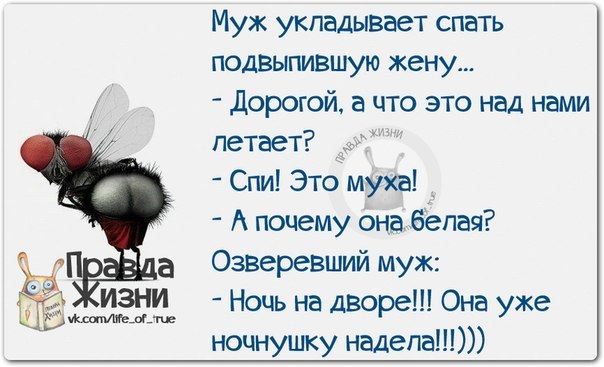 1 сентября 2014 1. 1 Сентября – всемирный День похорон лета. Возложение цветов в 9-00 во всех школах страны. Просьба не опаздывать. 2. С моей девушкой жить очень интересно, потому что любой её закидон – это новое направление в психиатрии. 3. - Алло, это анонимный телефон доверия ФСБ? - Да, Вячеслав… 4. Брак всегда порождает брак. Так, в Урюпинске партия некачественных презервативов вызвала целую волну бракосочетаний "вдогонку"… 5. Не клюет – это когда накопал червей, а их хватило на весь сезон. 6. - Ужас, как душно! Давай что-нибудь откроем? - Давай! - Шампанское или коньяк? 7. - Кто это разбил стекло в вашем большом окне? - Мой муж, этот трус несчастный! - Каким образом, он же такой тихий у вас? - Нагнулся как раз в тот момент, когда я бросила в него вазу. 8. Аллергия на работу лечится путем увеличения дозы зарплаты. 9. Олигарх Антон вместо мойки ездил на покраску. 10. Осень, +13 градусов: "Блин, где пальто, сапоги, шарф, свитер, колготки, шапка?" Весна, +13 градусов: "Отлично, пойду в шортах!" 11. Случайное открытие двери в школьную подсобку обернулось для Сережи пожизненной «пятеркой» по русскому языку и по физкультуре. Юла, Сибирская Кошка, Marismi77 и 10 других сказали спасибо Поделиться сообщением Ссылка на сообщение