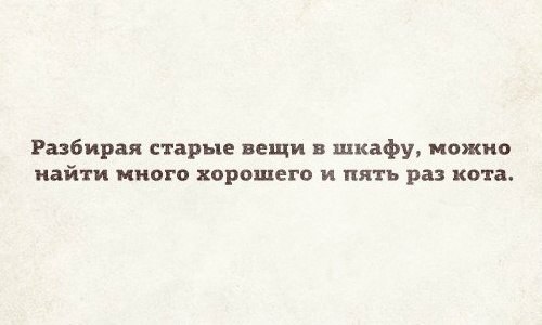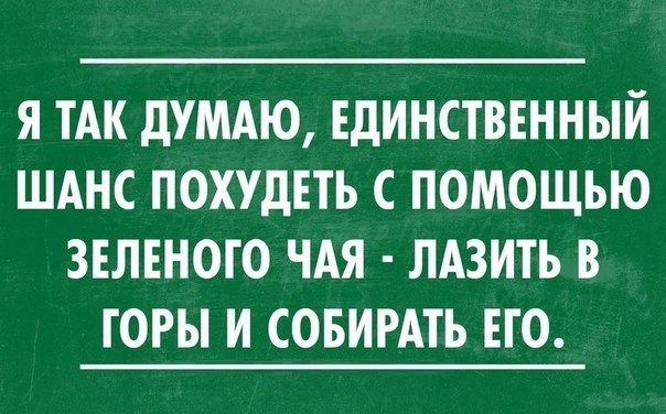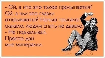 27 августа 2014 4 дня просидела на диете. Ночью захотела пить, подошла к холодильнику, дальше все как в тумане... Очнулась, когда запивала шоколадку борщом... Собрал грибы.. Пожарил. . На всякий случай помылся, побрился, одел всё красивое . . . Сижу ем. Пусть мама услышит, Пусть мама придет, Пусть мама меня непременно найдет. Ведь так не должно быть на свете, Снаружи замок в туалете... В России двойная сплошная должна быть не менее сорока сантиметров в высоту. - Официант, почему вы подаете все блюда остывшими? - Вы заказали водку, винегрет, холодец и мороженое, что именно подогреть? Мы живём в удивительное время, где парень может поразить девушку, если просто напишет сообщение без ошибок. - Деньги есть? - Нет. - А если найду? - Буду признателен. Вы думаете, сказки начинаются со слов: "Жили-были"? Ошибаетесь, сказки начинаются со слов: "Успокойся, милая, она всего лишь моя знакомая!" Хорошо было в детстве: мишурой обмотался, под елку залез, мандаринку заточил - и ты в сказке. А сейчас уже и не знаешь, чем обмотаться, куда залезть и что сожрать, чтобы хотя бы новогоднее настроение появилось. Я обещала быть хорошей. Но если вы услышите стрельбу, значит у меня не получилось! ХОРОШЕГО НАСТРОЕНИЯ! alex_sterh, aleksaA, Marismi77 и 18 других сказали спасибо Поделиться сообщением Ссылка на сообщение