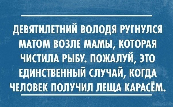 4 сентября 2014 Про "Пирожки" и "Порошки" я вам уже рассказывала. Теперь, дети, мы познакомимся с «ЭкспромЪтами» "«ЭкспромЪт» — это младший братишка в «пирожковой» семье, появившийся совсем недавно. Однако лаконичные двустишья из семнадцати слогов не уступают в остроумии старшим товарищам. *** шаман за скверную погоду недавно в бубен получил © Серёга *** я недостаточно красива штоб слишком глупо поступать @ Мурка *** обидеть таню может каждый не каждый может убежать © SergRomich *** я не хотела вас обидеть случайно просто повезло © jordana *** а мне насрать сказал геннадий и бармен выполнил заказ © Волшебница *** детей цветов давно не стало теперь лишь дети овощей © svirt *** ты присылаешь двадцать скобок о как же я люблю твой смех © Цай *** купил для памяти таблеток а может быть и не купил © mml & Чук *** поскольку времени немного я вкратце матом объясню © Галеня *** я все советы ваши слушал теперь скажу куда идти © bazzlan отсюда lenning, rramil, Elise и 19 других сказали спасибо Поделиться сообщением Ссылка на сообщение