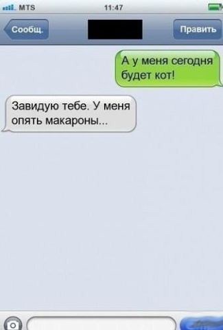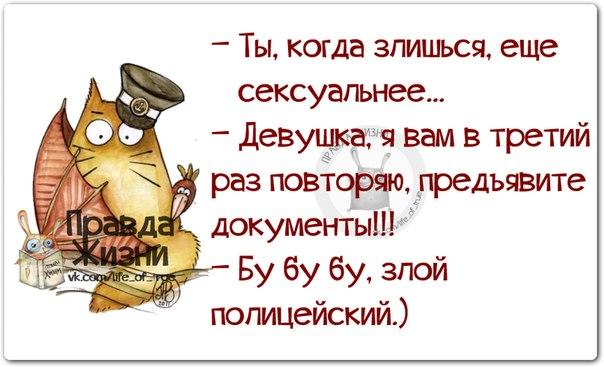 21 октября 2014 1. - И не вини себя. - А я и не виню. - Значит, ты слушал меня невнимательно 2. Найти 100 баксов и от радости пропить с друзьями 200 – так умеет только русский человек. 3. - Дорогой, опаздываю, налей себе чай сам. - Хорошо… а сколько ложек сахара я люблю? 4. Израильский SQL-сервер отвечает запросом на запрос. 5. Этапы жизни одесской женщины: Больная. Больная. Больная. Очень больная. Смертельно больная. Вдова. 6. Экстремальные виды спорта по степени нарастания опасности: парапланеризм, дайвинг, паркур, переход улицы на красный свет, прогулка ночью по Южному Бутово, жизнь на зарплату, возражение жене, ипотека. 7. Вечно я всё пропускаю! Пойду пропущу ещё стаканчик… 8. Какие только объявления не клеили на стену, чтобы за угол не ходили по нужде... И штрафом пугали, и злой собакой – ничего не помогало. Но стоило повесить табличку "Поссышь здесь, станешь звездой ютуба"... 9. Два студента военной кафедры стоят, курят в туалете. Один спрашивает: - А знаешь, чем наш майор от осла отличается? Из-за спины майорская морда, ехидно: - Ну и чем же? - Ничем, товарищ майор! - Вот. То-то же у меня! 10. Только в три месяца можно пукнуть и срыгнуть одновременно и при этом остаться "Вкусняшкой", "Конфеткой" и "Сладкой девочкой"! 11. Если я встал посреди ночи, значит, меня кто-то разбудил. Если меня кто-то разбудил в такое время, значит, дело срочное. Итак, кот, я слушаю тебя… 12. - Доктор, как быстро убрать живот? - Повернитесь спиной! 13. Рядом с тобой я теряю над собой контроль, шоколадка… 14. - Девушка, скажите, а из чего сделаны эти сапожки? - Из кожи молодого… дермантина. 15. Вчера вечером закрывала окно и увидела, как падает звезда. Загадала желание... Сегодня утром треснула губа. Намек поняла... 16. Телефон. Деньги. Пульт от телевизора. Ключи от машины. Все это ерунда!!! Вы когда-нибудь теряли соску в час ночи?! 17. - Мальчик, я не могу продать тебе пиво, ты несовершеннолетний. - Вы бабу мою видели? Вон она. Ира, повернись! - ЁЁЁЁЁЁЁ… Бери водку. 18. На 69-ой странице инструкции по эксплуатации автомобиля "Лада" есть расписание движения автобусов. Bellatrix, BlueeYeS, Маняша и 10 других сказали спасибо Поделиться сообщением Ссылка на сообщение