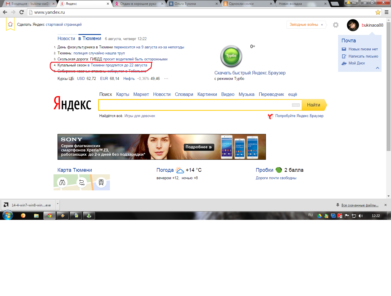 6 августа 2015 И снова Яндекс меня "радует"))) Я прям в восторге, что могу купаться до 22 августа)))) несмотря на температуру не больше 17 и дожди постоянные))) Поделиться сообщением Ссылка на сообщение