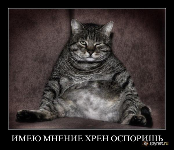 25 мая 2010 котов на испуг не возьмешь!! Я на 9м году жизни моего кота внезапно поняла что он не знает слова БРЫСЬ!, ему просто на все пофиг Поделиться сообщением Ссылка на сообщение
