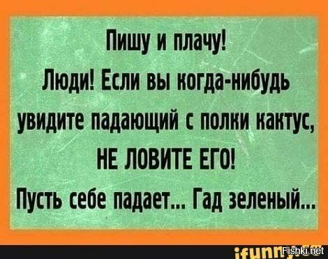 11 августа 2019 А я как-то поймала кактус, на работе, причем я сначала на автомате поймала, а уже потом поняла, что это кактус )) Но было поздно )) чеба, Vika71, leba и 9 других сказали спасибо Поделиться сообщением Ссылка на сообщение