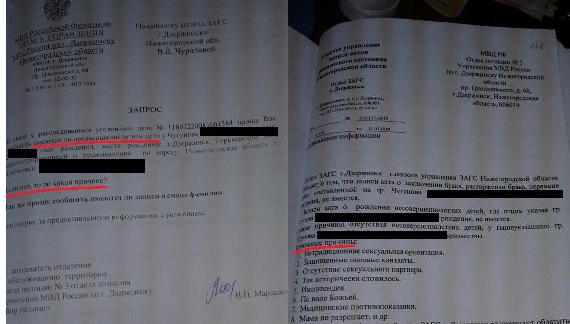 11 октября 2019 Очень смешной документ попал в социальные сети Дзержинска. Местная полиция, расследуя уголовное дело, отправила запрос в ЗАГС с просьбой уточнить, есть ли у гражданина дети. И если нет, то почему. В ЗАГСе предоставили достойный ответ.— Записи акта о рождении несовершеннолетних детей, где отцом указан гражданин Чугунов, не имеется. Точные причины отсутствия несовершеннолетних детей у вышеуказанного гражданина Чугунова неизвестны. Возможные причины: - Нетрадиционная сексуальная ориентация. - Защищенные половые контакты. - Отсутствие сексуального партнера. - Так исторически сложилось. - Импотенция. - По воле Божьей. - Медицинские противопоказания. - Мама не разрешает и др. Юла, Anya_80, ole4k@ и 37 других сказали спасибо Поделиться сообщением Ссылка на сообщение