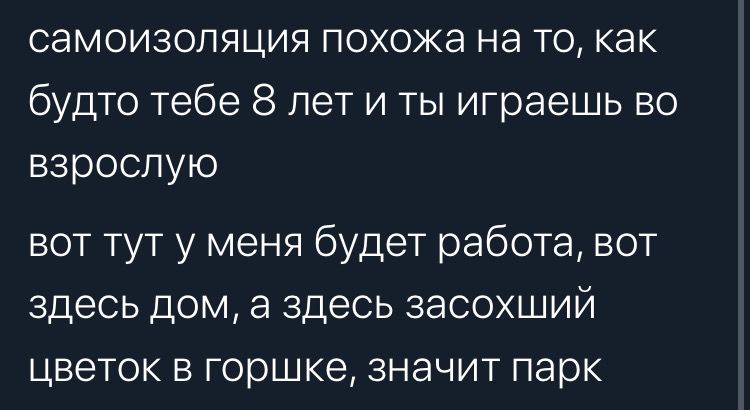 5 апреля 2020 3 мая 2020 года Где-то в России... \/Регистрация прошла успешно". "Получить QR код для выхода из дома" ×"Выберите причину выхода из дома" *"Вынести мусор" ×"По нашим данным, ваш подъезд оснащен мусоропроводом. Выберите другую причину" *Выгулять собаку" ×"По нашим данным, на ваше имя собака не зарегистрирована" *"В магазин" ×"Выберите вид магазина" *"Продукты" ×"Выберите наименования продуктов из выпадающего списка" *"Сигареты" ×"Курение вредит вашему здоровью. Выберите другие наименования продуктов из выпадающего списка" ×"Пиво" *"Употребление алкоголя вредит вашему здоровью. Выберите другие наименования продуктов из выпадающего списка" ×"Молоко" *"По нашей информации вы купили 2 литра молоко вчера. Выберите другие наименования продуктов из выпадающего списка" ×"Лимон" *По нашим данным, ваши деньги должны были закончится ещё вчера, откуда у вас такие большие деньги? Заполните пожалуйста декларацию и уплатите налог за ваши сбережения" ... **"Ваш лимит обращения за QR кодом на 3е мая 2020 года исчерпан. Следующее обращение возможно с 11:00 часов 5 мая 2020 года." "ПОЖАЛУЙСТА ОЦЕНИТЕ НАШЕ ПРИЛОЖЕНИЕ" Звезда в шоке, reyjeff, АлёNка и 49 других сказали спасибо Поделиться сообщением Ссылка на сообщение