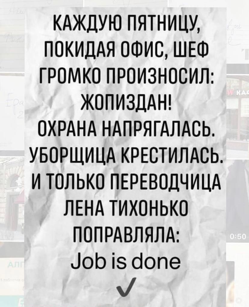 6 декабря 2020 Купил булгур в пакетиках для варки. Адрес места производства указан следующим образом "Россия, Краснодарский край,Красноармейский р-н, х. Протичка, примерно в 2000 м. по направлению на восток от хутора". Если хочешь узрить где делают булгур, ночью, в полнолуние, разденься догола, трижды обернись кругом и иди 2000 метров на восток от хутора. И узришь. Местная реклама: "Купи шубу по цене фабрики" Какая-то дорогая шуба. EXL: Деньги, конечно, не пахнут, но что Facebook сделал полезного для IT? ChekPuk: Он отвлекает жён программистов. Начальство распекает соседний отдел: - ну ребят, ну нельзя же так работать! тем болтом, который вы на работу положили, можно ракеты останавливать! - ага, а за наш долг по зарплате эти самые ракеты уже купить можно... (c)bash.org BlueeYeS, Хозяйка смешных зверей, герда28 и 18 других сказали спасибо Поделиться сообщением Ссылка на сообщение