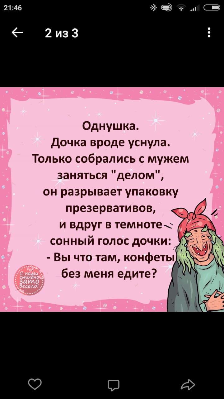 3 марта 2021 xxx: сегодня на рынке видел прекрасное - "свиные окорочка" xxx: поинтересовался есть ли говяжьи крылышки xxx: получил ответ: сегодня не завезли, но если очень надо, то он мне завтра отложит *** ххх: я атеистка до мозга костей, я не верю существование после смерти! ххх: не дай Бог (уже хорошо), вы похороните меня со своими дурацкими религиозными обрядами!! ххх: я вас прямо с того света прокляну!!! *** zzz: В школе отработала двадцать пять лет. Такой срок за убийство дают. *** xxx: где эта тонкая грань, когда баг становиться фичей, а костыль - велосипедом? *** искали человека с опытом работы во фреймворке 5 лет, а чел им говорит: "я этот фреймворк 2 года назад написал". *** Вчера проходила мед осмотр на замену водительского удостоверения. Психиатр на приеме спрашивает: - Четверть часа - это сколько? - 15 минут. - Неправильно. - 25 минут? - Правильно. Держите ваши документы. Ну я и пошла. Чё с психами спорить? *** У нас третий день продолжается непонятный прикол (пока считаем приколом). Есть некий документ - абсолютно невинного содержания, без грифа, без чего-то незаконного и т.д. Документ существует только в бумаге (так получилось) - порядка десяти экземпляров. И вот он срочно понадобился. Звоним (пишем, передаём через третьих лиц) и просим прислать скан (фото, ксерокопию). Никто не отказывает - через часок, двадцать минут, к вечеру и т.д. Посе чего человек исчезает - либо не доступен, либо не берёт трубу. Примерно через полсуток выясняется - сломал ногу, попал в милицию, потерял ключи от сейфа, срочно уехал в другой город. Уже пятеро отвалилось. *** xxx: Домашнему мастеру на заметку, самый обычный ударный вертолет Апач делает отверстия в несущих стенах гораздо быстрее, чем любая супермегапрофессиональная ударная дрель. (с) bash.org Bellatrix, Сибирская Кошка, Юнона1960 и 16 других сказали спасибо Поделиться сообщением Ссылка на сообщение