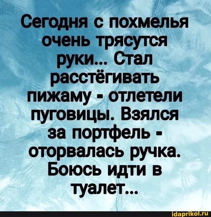 24 марта 2021 Жена: - А что это за напоминалка у тебя сработала «Пробудить древнее зло»? Муж: - Подними свою маму, пожалуйста, любимая. Ей в поликлинику пораньше нужно сегодня *** Я одно время заявлялась в парикмахерскую с утра со словами "да не надо мне укладку, я сейчас спать пойду ( В ночную смену работала) *** xxx: Доброе утро, Сергей. У меня не открывается база. yyy: Пишет "сервер не отвечает"? xxx: Да, как вы догадались? yyy: У меня есть дар предвидения. Гадая по внутренностям лежащего на столе полуразобранного сервера, я точно могу предсказать, что сейчас кто-то позвонит и скажет, что сервер не отвечает. bash.org Юла, Хозяйка смешных зверей, Сибирская Кошка и 20 других сказали спасибо Поделиться сообщением Ссылка на сообщение