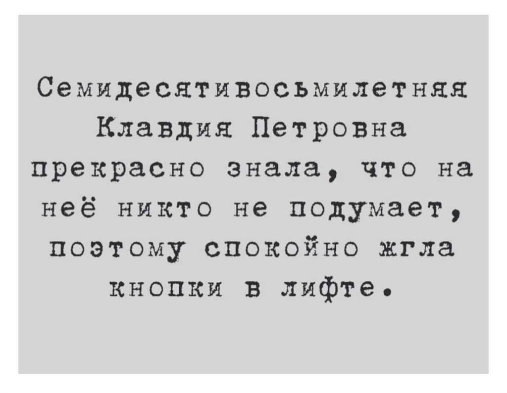 11 ноября 2021 Дарья Исаченко написала много рассказов, они то смешные, то грустные, но всегда читать их очень интересно. Зашла утром в ванную зубы почистить. Пока чистила, гляжу, раковина в подтеках. Помыла. Голову подняла — зеркало мутное. Протерла. В чистое зеркало видно, что в шкафу позади баночки в беспорядке. Рассортировала, расставила. Нашла шампунь кем-то дареный. Решила голову помыть. Помыла, сразу и ванную почистила. Волосы феном стала сушить, голову вниз наклонила — корзина с бельем стоит. Загрузила машинку, пошла заодно и в спальне белье поменяла. Пока свежее белье из шкафа доставала, заметила, что свитер в катышках. Нашла машинку от катышек, побрила свитер. Повесила, думаю, надо уже весенние вещи достать. Перебрала, повесила. Зимние убрала, весенние достала. Мятые погладила. Пока гладила, в окно смотрела. Увидела пыль на подоконнике, пошла за тряпкой. Пришла в ванную, думаю, чего одну пыль, надо уже тогда и полы вымыть. Набрала ведро, стала в коридоре шваброй махать. Полы вымыла, смотрю — обувь. Надо бы перебрать. Ну, перебрала. Села, чувствую, сил нет. Спина болит и в боку ухает. Думаю теперь — идти вечером зубы чистить или нет? Чего-то побаиваюсь. Все-таки выходной. © Дарья Исаченко ol-mary, musya, Bellatrix и 29 других сказали спасибо Поделиться сообщением Ссылка на сообщение