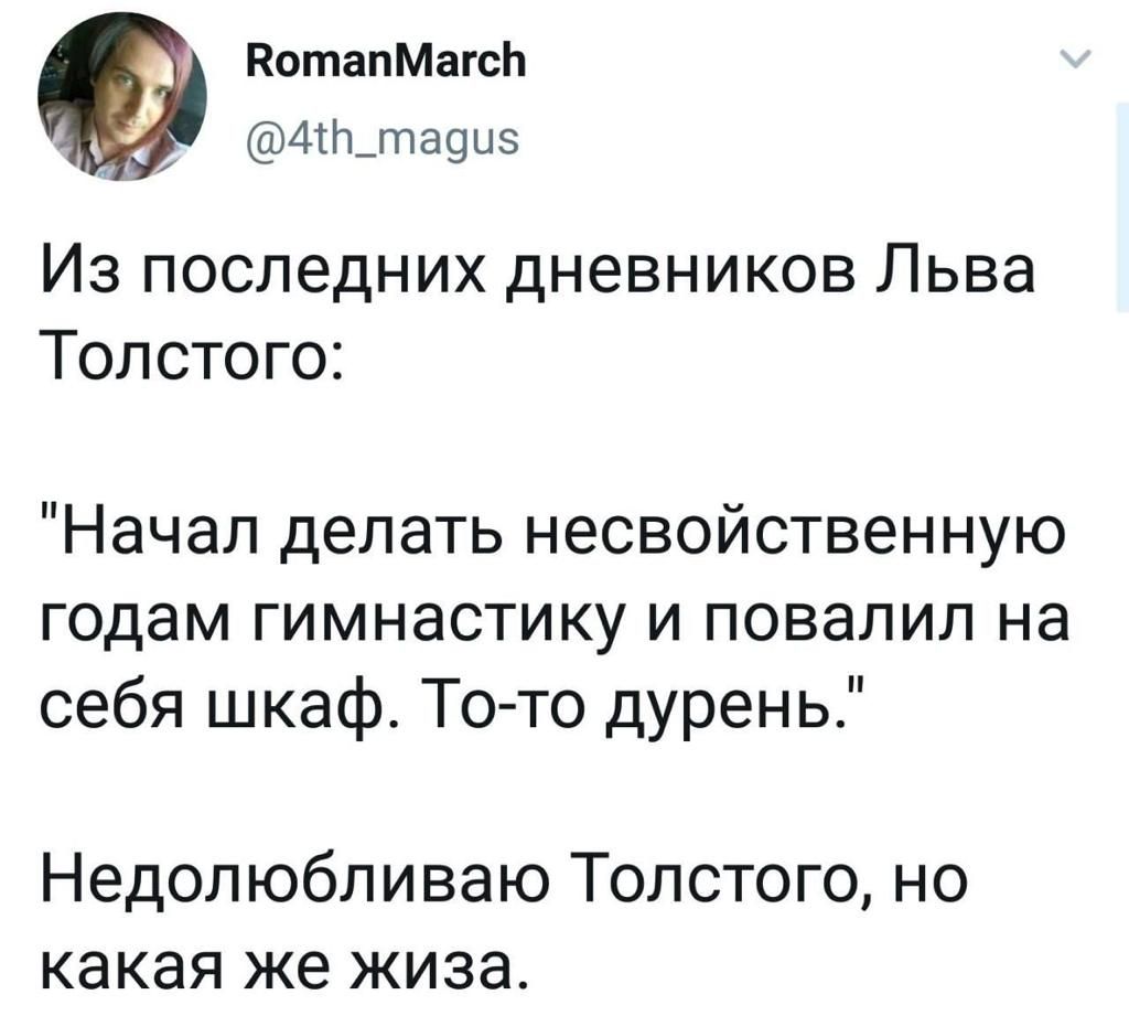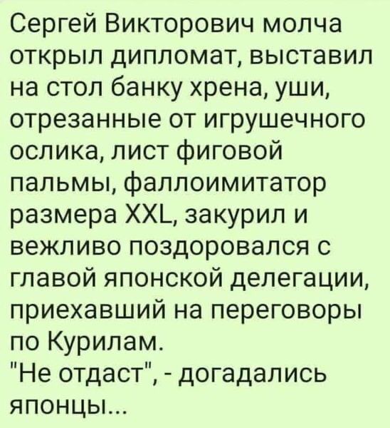 13 апреля 2022 15 часов назад, АриЯ сказал(а): Интересно, что ему ответил кот? Кот посоветовал хозяину записаться к психиатру, т к коты не разговаривают))). Ну или, как вариант, включить навигатор) lamina-65 сказал(а) спасибо Поделиться сообщением Ссылка на сообщение