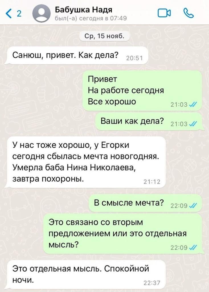 7 декабря 2023 1 час назад, Palex сказал(а): БЕРУ! СРОЧНО! 1 час назад, Palex сказал(а): Ну и как это работает? Совпало ведь! 1 час назад, Palex сказал(а): А если не отдаст, то и спина заболит, или попа, или ухо... В общем, куда скалка прилетит, там и лечить надо будет. Лучше отдать без сопротивления, выпить таблетку от головы и жить спокойно - так проще и менее травматично! Vitaliya, Palex, чеба и 3 других сказали спасибо Поделиться сообщением Ссылка на сообщение