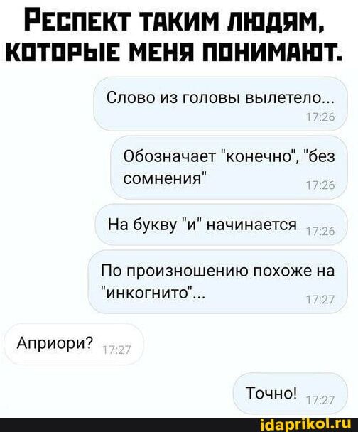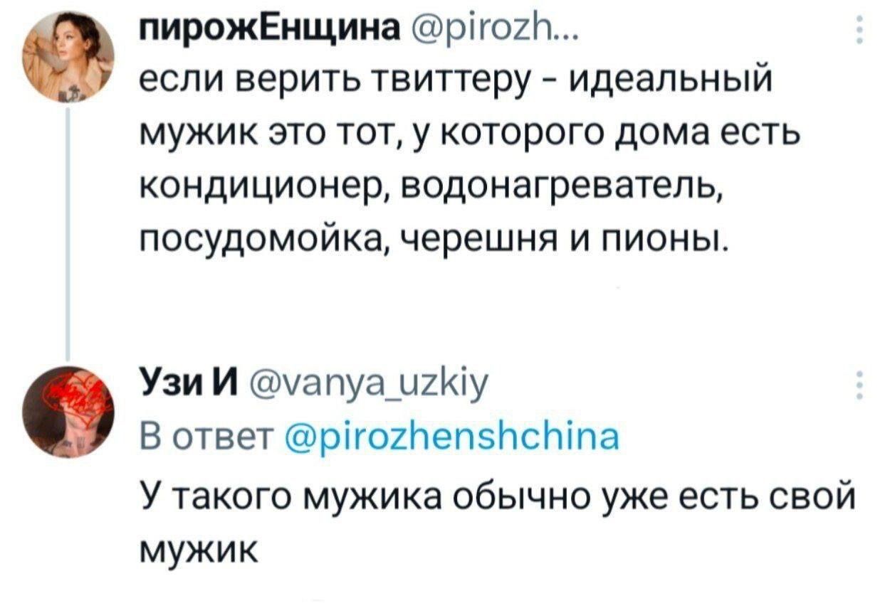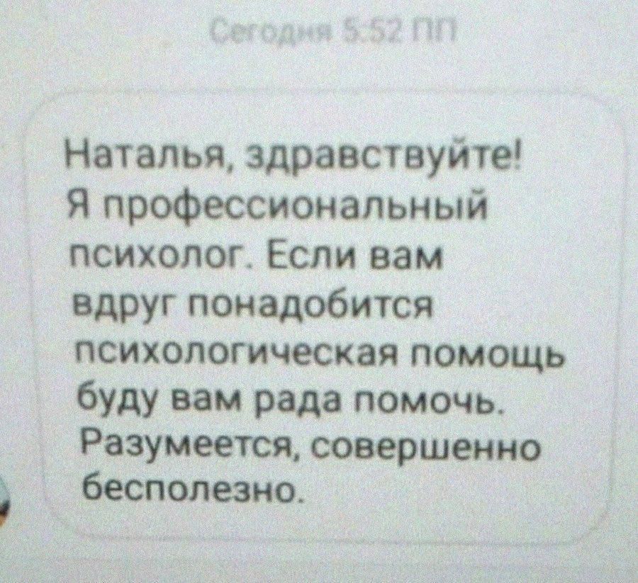 9 июля 2024 3 часа назад, Дикая белочка сказал(а): Ой, я прямо услышала песню тем самым голосом, с той самой музыкой, только текст про маршрутку... 3 часа назад, Дикая белочка сказал(а): Я читала и другую историю. Похожую. Когда мужчина попросил в письме девушку: - пришли, мол, фотографию своей киски. а потом долго любовался на фотку кошки. Не, ну а чо, все верно. Tatiana Ch., Юла, Bellatrix и 7 других сказали спасибо Поделиться сообщением Ссылка на сообщение