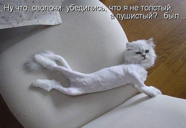 14 января 2013 В троллейбусе пожилая женщина пытается уступить место очень худому молодому человеку: - Присаживайся бедненький, ты что же худой то такой? Болеешь что ли? - Нет, спасибо. Студент я. - Ну давай хоть плащ твой подержу! - Это не плащ, это мой друг Коля! Едет в автобусе мужик. Отрывает от газеты маленькие кусочки, и бросает их в окно. Соседу стало интересно, он спрашивает: — Зачем вы рвете газету, и бросаете обрывки в окно? — Это отпугивает слонов... — Но там нет слонов!!! — Эффективное средство, не правда ли... Дима волнуется - раз, Витя волнуется - два, Петя волнуется - три: Маша пошла на УЗИ В ресторане. Официант: - Месье, что будете кушать. Клиент:- Я бы хотел то, что ест вон тот мужчина у окна! - Это невозможно, он не отдаст... Путь к сердцу мужчины лежит через желудок. Но можно сильно срезать через печень. Иногда я ругаюсь матом. Потому что мат, как и рафаэлло,- вместо тысячи слов… ))) В автобусе. Бабушка говорит парню с длинными волосами: - Девочка, передай за проезд. - Я не девочка! - Нашла, чем гордиться! dolli7, nadezhda7777, Лена1973 и 18 других сказали спасибо Поделиться сообщением Ссылка на сообщение