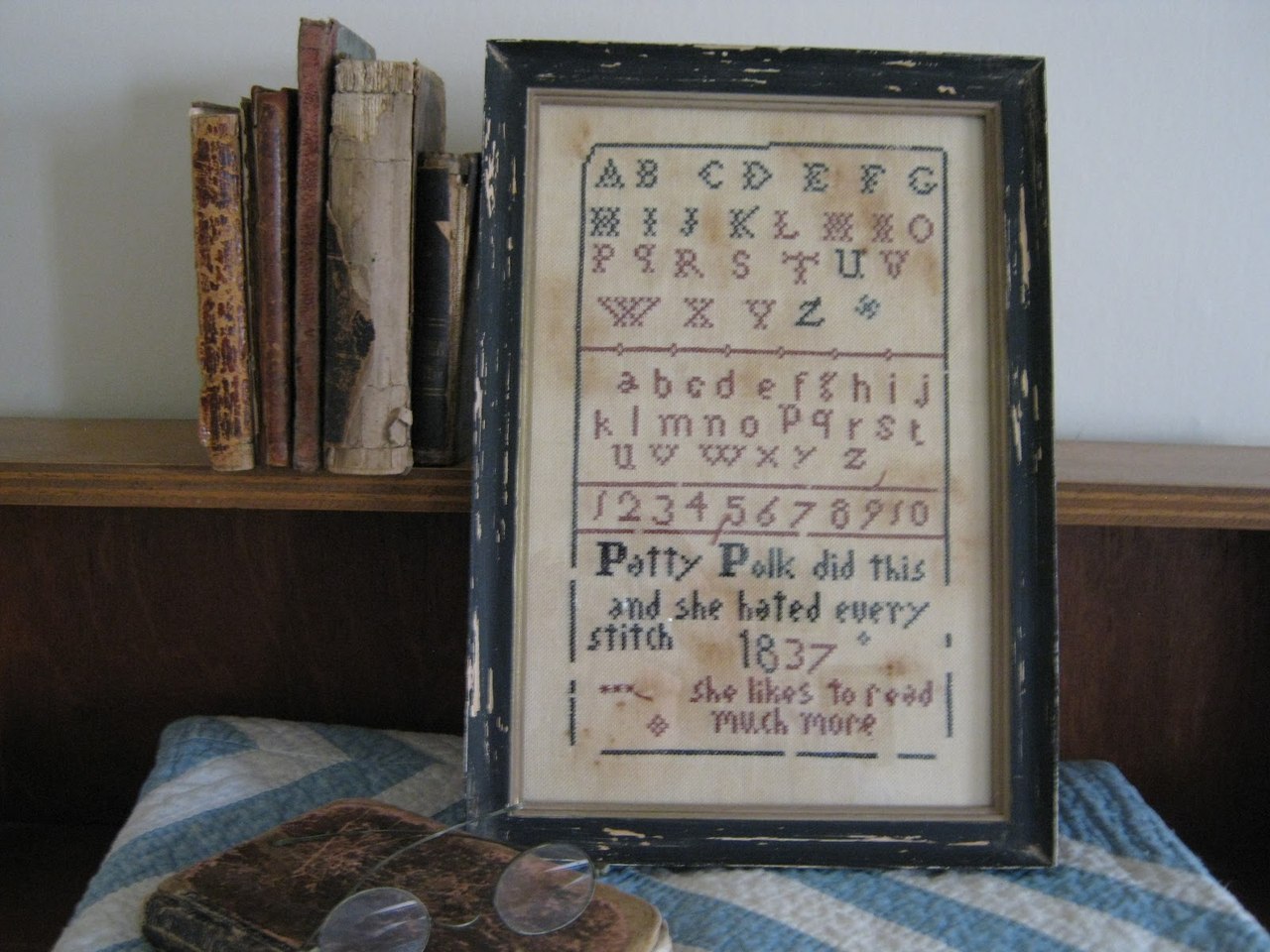 21 января 2013 Рукоделие, как известно, не только делает человека трудолюбивым, но и учит преодолевать трудности в ущерб своим интересам. Поэтому оно всегда использовалось в воспитательных целях. Вышивание было одним из главных занятий юной леди, которому посвящались многие часы, приносившие порой неожиданный результат. Маленькая девочка Пэтти Полк, жившая в 19 веке, сделала вышивку на радость своим родным и всем потомкам. Надпись на вышивке гласит: "Пэтти Полк сделала это, и она ненавидит каждый стежок. Она намного больше любит читать". Ofelia, Elenanika, Sweta и 8 других сказали спасибо Поделиться сообщением Ссылка на сообщение