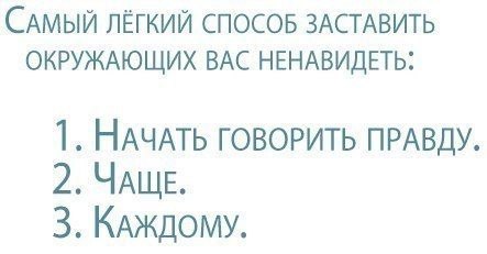 27 января 2013 Жизненное. я тоже правдорубка. но согласна отчасти. не переношу, если мне врут. пусть лучше неприятная правда, которую можно исправить, чем вечно лицемерить Lusha73, Дафна, Мария1981 и 1 другой сказали спасибо Поделиться сообщением Ссылка на сообщение