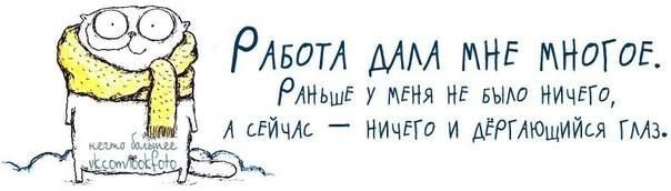 1 февраля 2013 Домой с пустыми руками нельзя... Дома живет Чёкупила! - Куда будешь поступать? - В Хогвардс. Туда легко поступать. Разбежался и об стену… Шеф диктует секретарше электронное письмо: - Сообщаю вам запятая что кредит запятая полученный нами у вас запятая в этом году мы не сможем отдать точка. Леночка, я сказал точка, а не двоеточие с тремя скобками! Вышел новый йогурт со вкусом йогурта и кусочками кусочков. - Сбегай в магазин, возьми пару бутылок водки. - "Пару" - это сколько? - "Пару" - это пять! Хорошего человека издалека видать, у него добрая улыбка, лукавый прищур и бутылка коньяка в правой руке... Когда в телерекламе человек с улыбкой встает утром с кровати, бодро собирается и, весело напевая, идет на работу, внизу экрана должна быть подпись: "Не пытайтесь это повторить! Трюк проделан профессиональным каскадером!" Жизнь надо прожить так, чтобы на небесах сказали: "Повтори". Или в аду сказали: "Добро пожаловать, наш господин!" Лена1973, Sweta, чеба и 11 других сказали спасибо Поделиться сообщением Ссылка на сообщение