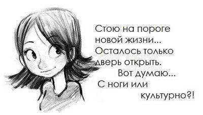 20 марта 2013 Доброго времени суток! Знаете, как китайское правительство победило саранчу? Просто объявив её съедобной. 14 февраля. - Дорогая, с праздником тебя! - С утра хоть не зли! Наконец-то человечество научилось управлять погодой: стоит помыть машину и сразу идет дождь, если взять с собой зонт – дождя не будет; в летний отпуск будет холодно, в зимний – слякоть; если купить осенью лыжи – зимой не будет снега, а если переобуть резину на зимнюю – хрен дождешься мороза, будет тепло. - Пойдём,напьёмся? - Нет! У меня теперь работа нормальная, девушка, которую люблю, и, вообще, пора уже взрослеть. - ? - Шучу, сейчас приду... Самый лучший друг - это кот. Он никогда не скажет "Почему ты жрёшь по ночам?". Он будет жрать вместе с тобой!!! Диета - это когда вы пошли на кухню за яблочком и внезапно сожрали свиную котлету. Ничего так не поднимает настроение, как сообщение: "Пришли!!!" От девушки с задержкой в 10 дней... Недавно подруга с ребенком 4-х лет пошла в магазин за водкой. У дочки заболело ухо и нужно было сделать компресс. И вот стоит у кассы: в одной руке ребенок, в другой бутылка. Кассирша с неодобрением посмотрела на мамашу. Дочка в защиту мамы: - Моя мама не пьёт, это - мне! Дети! Тщательно взвешивайте и обдумывайте слова, которые вы произносите вслух. Так, фраза: "Папа, ты хороший!" тянет максимум на китайский игрушечный пистолет. А вот фраза "Папа, я хочу быть таким же умным, как и ты!" - это уже серьёзная заявка на велосипед.. Мне рано заводить детей. Я морально не готов покупать киндер-сюрприз и отдавать его кому-то. 80% мужчин, узнав об измене жены, собирают вещи и уходят к любовнице. Жена у меня сегодня встала на весы и задумчиво так сказала: - Что-то я давно не подстригалась. По утрам девушки делятся на 4 типа: 1. Пусть не накрашусь, но посплю. 2. Пусть не накрашусь, но пожру. 3. Пусть не посплю и не пожру, но накрашусь. 4. ВЕЗДЕ, БЛ@ДЬ ОПОЗДАЮ, НО ПОСПЛЮ, ПОЖРУ И НАКРАШУСЬ! ХОРОШЕГО НАСТРОЕНИЯ! Евгения Чичкова, скрипка, Татуся и 14 других сказали спасибо Поделиться сообщением Ссылка на сообщение