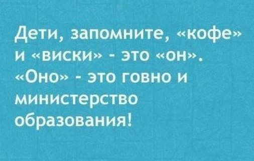 12 августа 2013 В поезде: -А вас как зовут? - Анжелика. - Как красиво!Анжелика! А у нас в деревне все как ни Маруси,так Просковьи. - А сына вашего как зовут? - Артур. - Как красиво! Артур! А у нас в деревне все как ни Василии,так Спиридоны. - А мужа вашего как зовут? - У меня нет мужа,я мать одиночка. - Как красиво!Мать одиночка! А у нас в деревне говорят блядь.. )) Муж прошептал на ушко: «Привяжи меня и делай что хочешь…» Привязала и уехала в ночной клуб.) Мужчинам надо знать, что если женщина счастлива - будут счастливы ее дети, родители, муж, друзья, собака и даже тараканы... Пааап а что такое МУЖЧИНА??? - Ну... Это сильный человек который любит, охраняет и заботиться о своей семье!!! - Здорово!!! Хочу стать мужчиной как МАМА... Судя по квитанции ЖКХ, из крана у меня весь месяц текло "Хеннесси, текила, виски, коньяк", мусор вывозил лично губернатор, а уголек в котельной подкидывал лично глава администрации города. krume, чеба, Bellatrix и 14 других сказали спасибо Поделиться сообщением Ссылка на сообщение