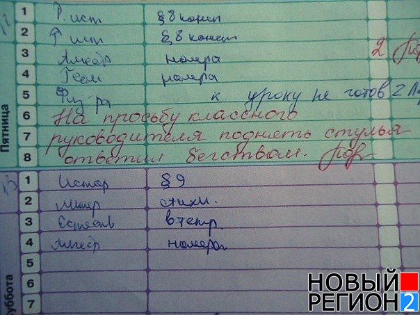 7 октября 2013 Челябинск, Октябрь 04 (Новый Регион, Ольга Арсентьева, Николай Бутов) "В России начали отмечать День учителя: педагогам предстоит выслушать немало комплиментов и благодарных слов в свой адрес. «Новый Регион» решил присоединиться к прославляющем хору и отметить, на наш взгляд, одну из важнейших черт современного учителя – креативность. Сегодня педагогам предъявляют массу претензий – в черствости, меркантильности, недостаточном профессионализме и т. д, и т.п. Но в чем им не откажешь, так это в творческом подходе к профессии. Судить об этом можно хотя бы по записям в дневниках школьников". «Ув. родители! Подстригите своего ребенка. Хочется посмотреть ему в глаза» «Абсолютно не знает Пушкина! Уважаемые родители! Прошу познакомить!» «Принес водки, сорвал педсовет». «Курила на уроке, бегала на перемене, а надо – наоборот! Ваша дочь – это что-то. Что именно – объясню при встрече». «Разговаривал на уроке пения, дерзил учителю, что это рэп». и дальше фотки оттуда же: http://nr2.ru/chel/463542.html Tari, Стеша, titania и 33 других сказали спасибо Поделиться сообщением Ссылка на сообщение