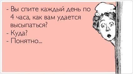 18 декабря 2013 Муж придя с работы спрашивает у жены : - Ну, как дела моя сладкая!!!? Она ему: - Все хорошо дорогой ! Борщ сварила, котлеток нажарила !! Окошки протерла, детские вещи все перестирала ! Вот сижу носочки вяжу!!! Завтра , если снова забудешь заплатить за интернет, я тебя УБЬЮ !!!! В@ниль, Лоскутик, Bellatrix и 16 других сказали спасибо Поделиться сообщением Ссылка на сообщение