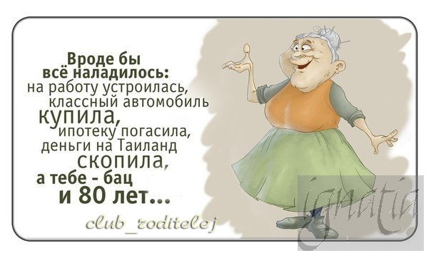 19 декабря 2013 Забегает муж домой, хватает жену за руку, несётся в спальню, бросает на кровать. Жена в шоке, за 20 лет такого не было. Муж заваливается к ней, накрывает их одеялом с головой и говорит: - Смотри! Часы купил... светятся! Griffiti, герда28, Valery*** и 18 других сказали спасибо Поделиться сообщением Ссылка на сообщение
